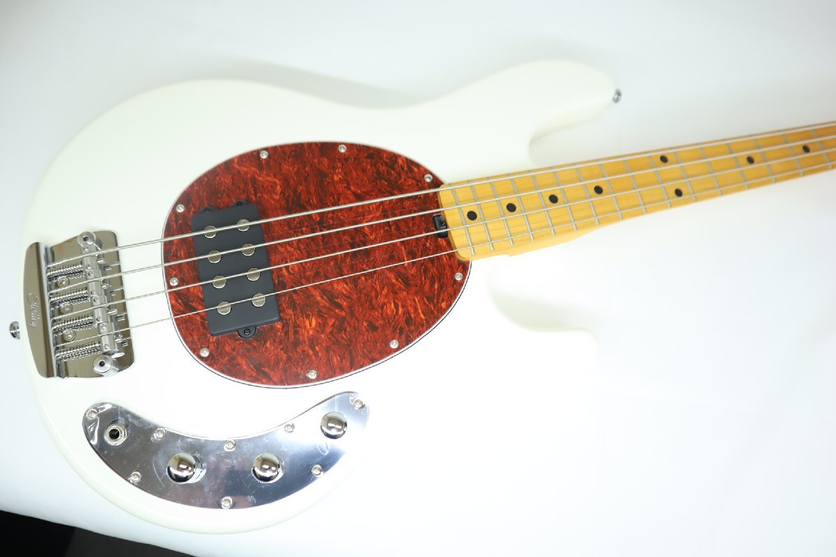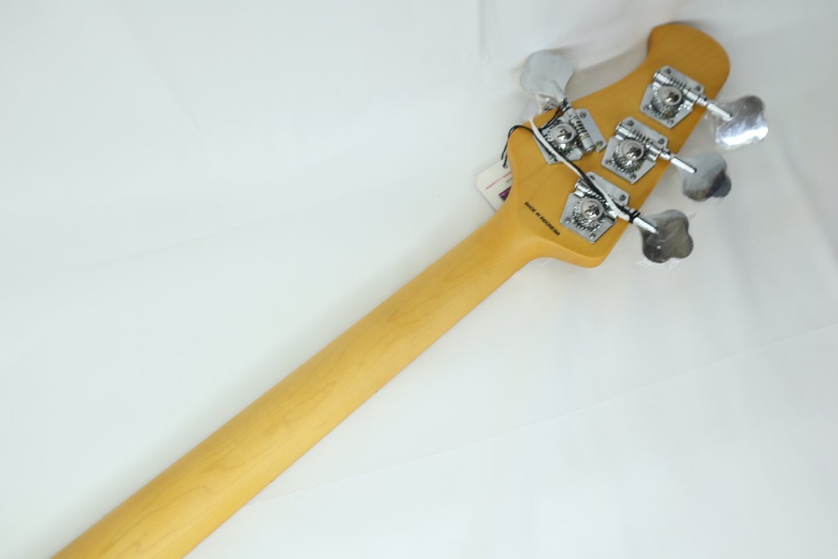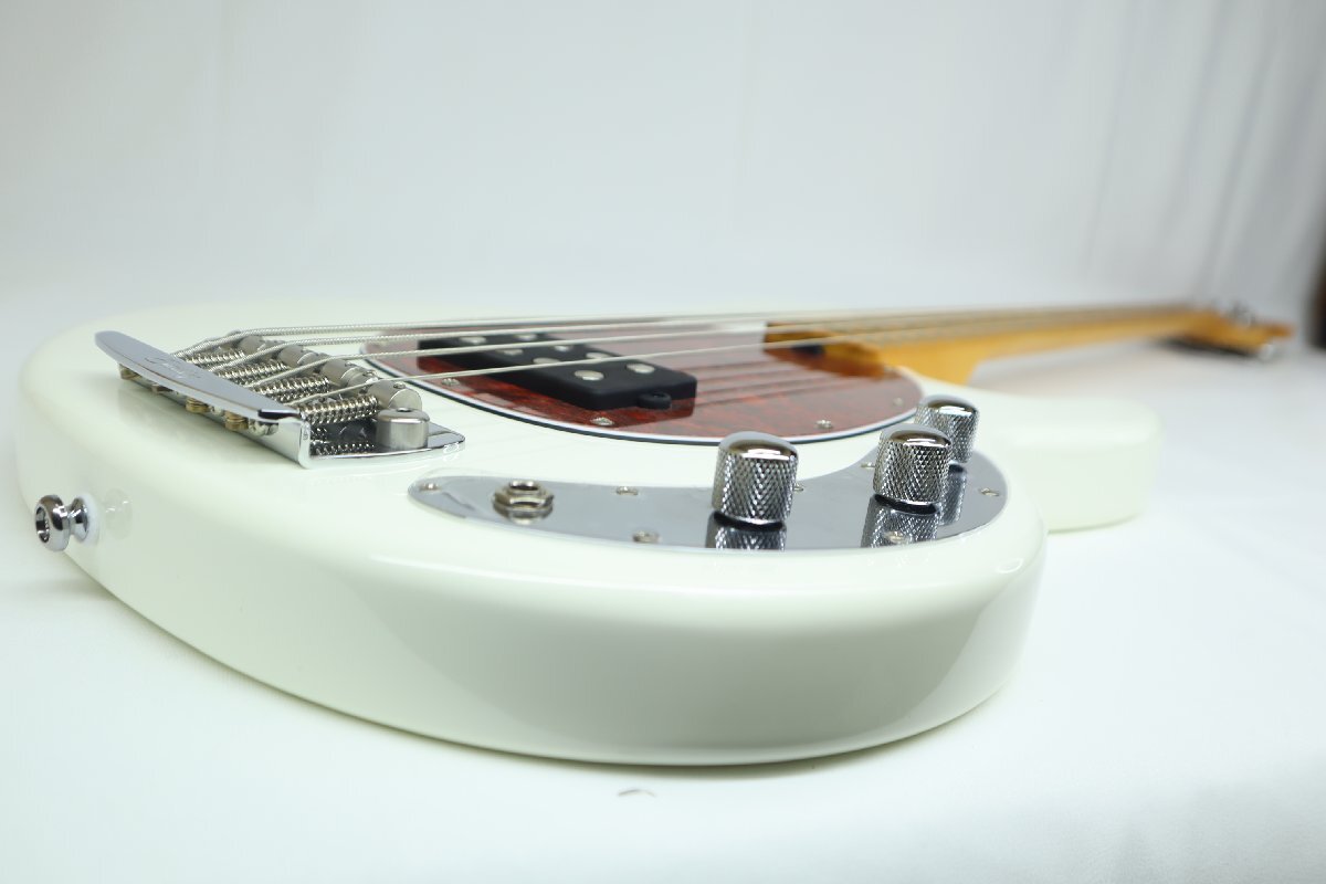 こちらのRay24は初期のオリジナルスティングレイをベースとしており、コンターの無いフラットなスラブボディ、9V駆動の2バンドアクティブプリアンプなど、当時の特徴的な仕様を採用しております。またナット幅が38mmと細めなので握りやすくスムーズなフィンガリングが期待できます。ミュージックマン社がこの為にデザインしたハムバッキング・ピックアップ&2バンド・アクティブ・イコライザーを搭載しており、バキっとした輪郭を持つ太い独特の低音をアウトプットします。音の芯の感じられるストレートなサウンドはスティングレイ・モデルさながらの仕上がり!ピックでも指弾きでもスラップでも、パキンとダイナミックな低音がお楽しみいただけます。 ミュージックマンと同様の6ボルト・ネックジョイントや、ミュージックマン・デザインによるブリッジ部等、細かなコダワリが生み出す充実のサウンドを是非一度ご自身でお確かめ下さい!
