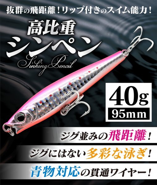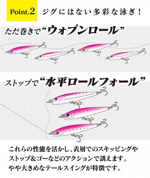 95mmのボディーに詰め込んだ40gのハイ比重設計。/空気抵抗を抑えながら、ハイ比重で長距離飛行。