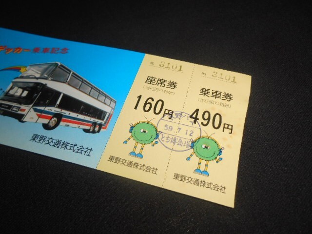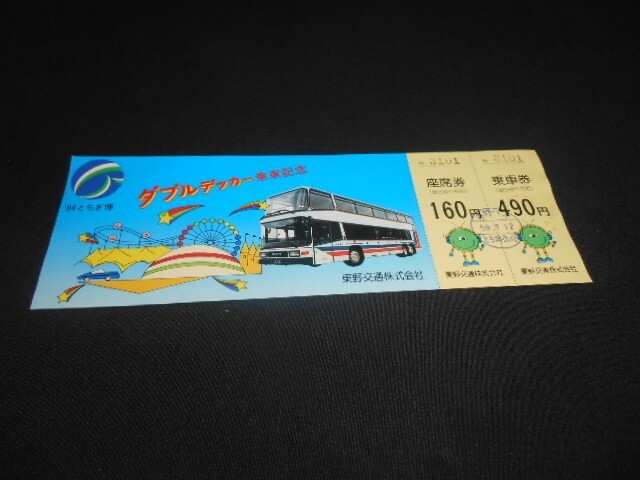 東野交通 84とちぎ博ダブルデッカー乗車記念 記念乗車券650円 難有 昭和59年 送料110円