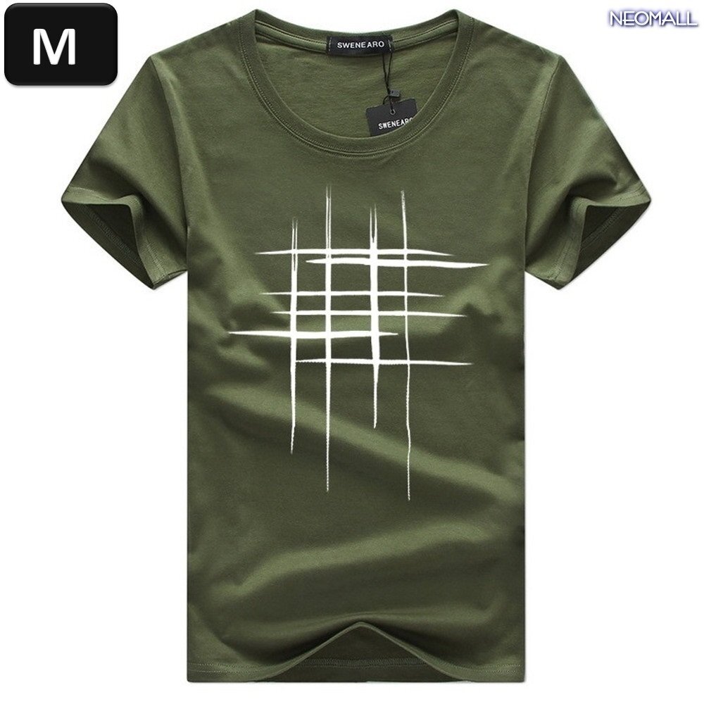 夏にピッタリ ☆ 丸首 半袖 Tシャツ【348】 グリーン Mサイズ トップス シャツ シンプル イラスト デザイン 春夏