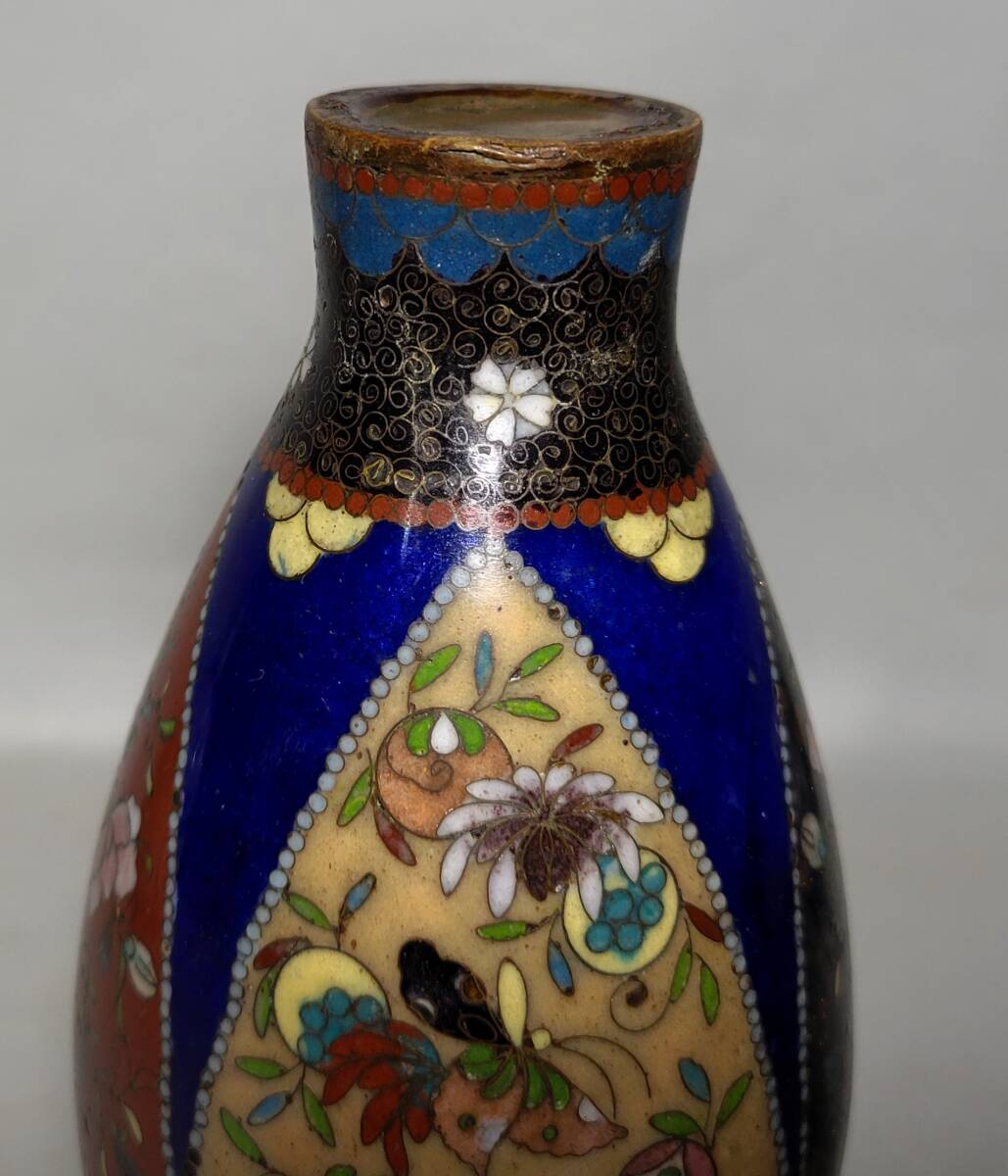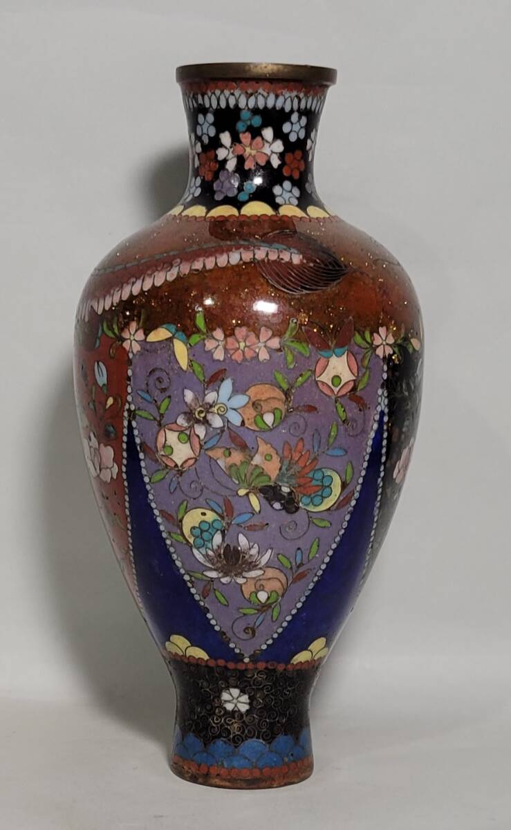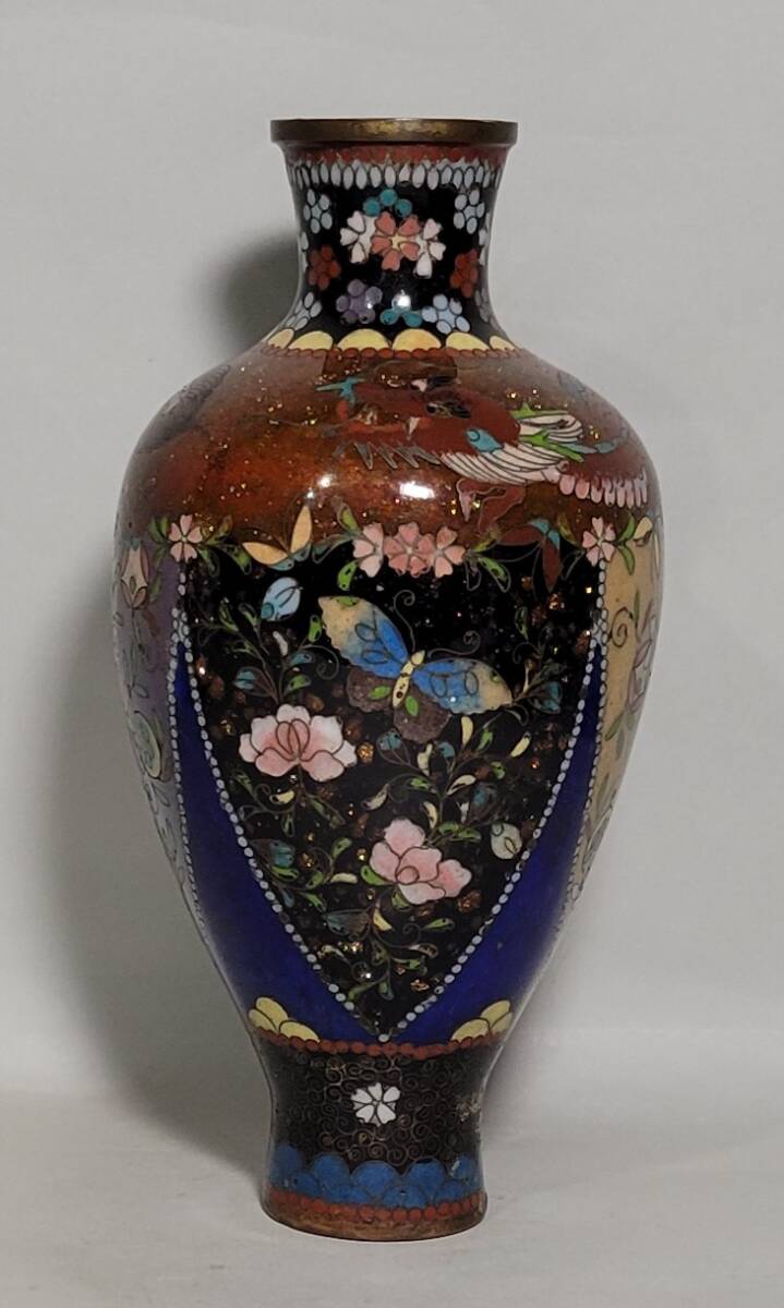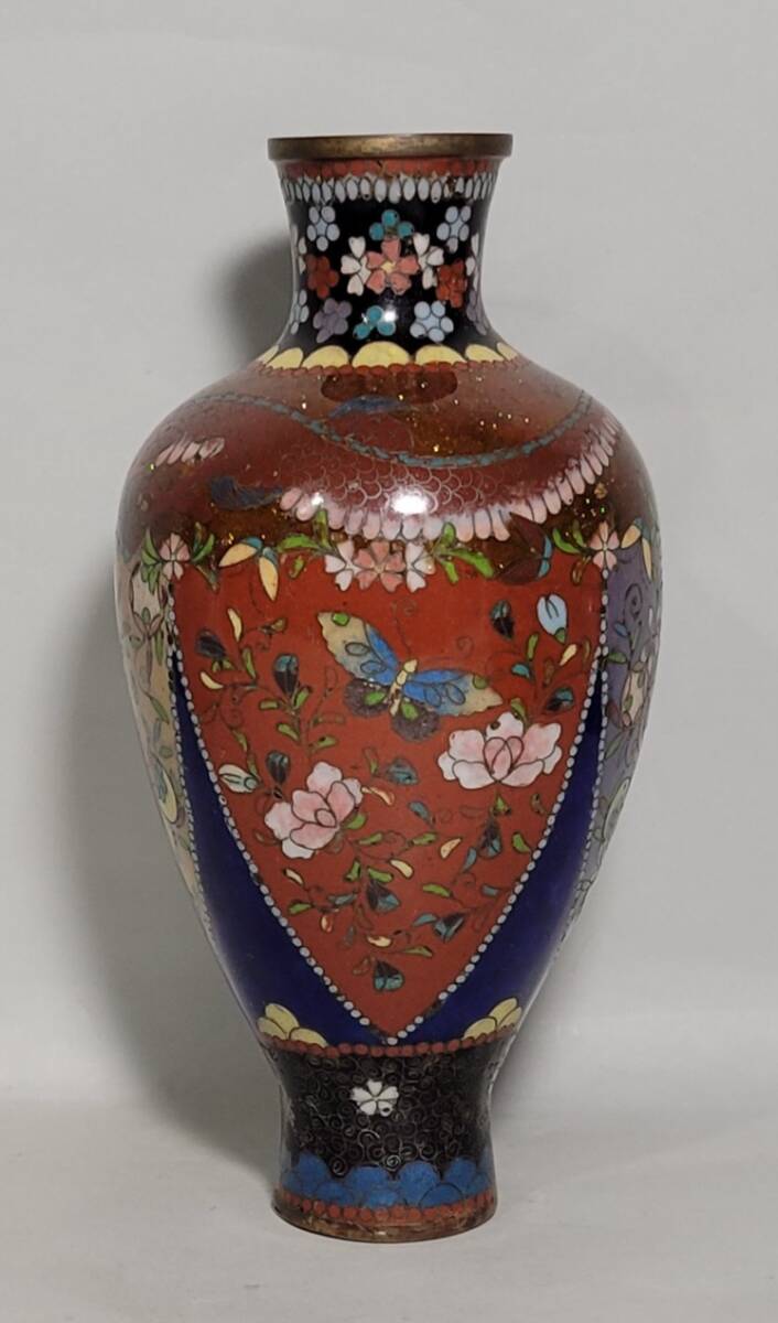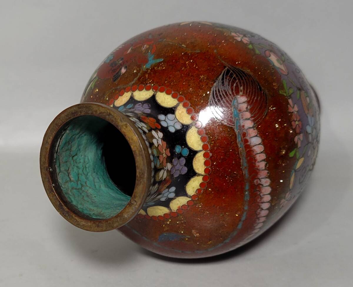 特徴 時代唐物銅製細密七宝 龍花蝶文小花瓶です。文様も細密で非常に素晴らしい品です。唐木台が付属します。
