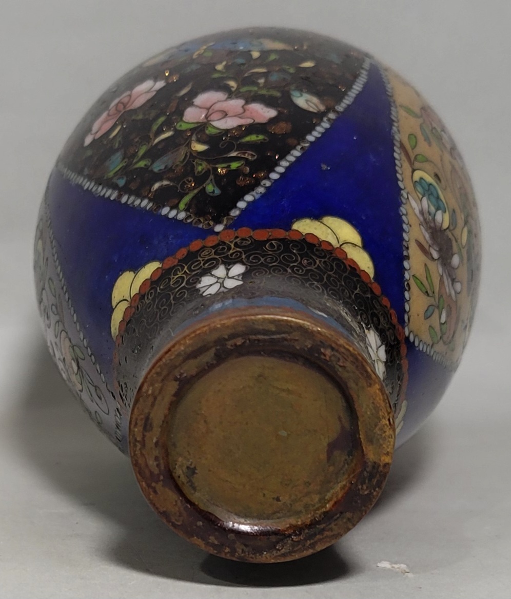 出品物 時代唐物 銅製 細密七宝 龍花蝶文小花瓶 唐木台付属 古七宝