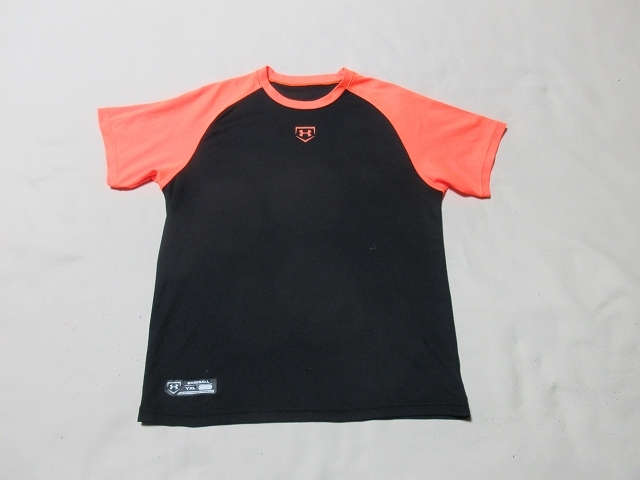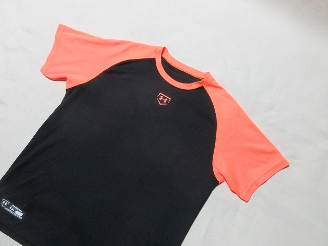 A-564★アンダーアーマー・BBB8754♪黒xオレンジ/半袖ベースボールシャツ(YXL)★