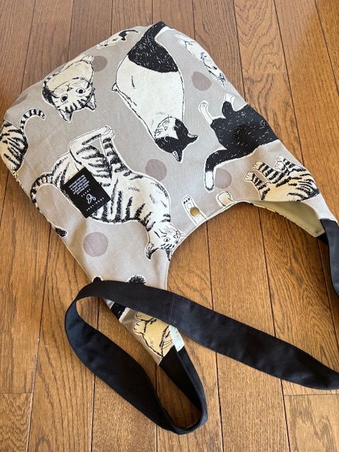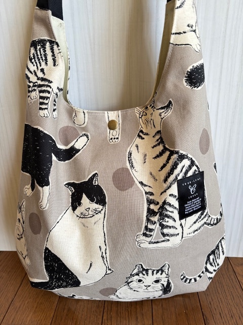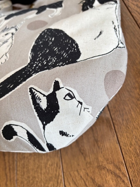 コットンリネンキャンバス生地自由なねこさんたちがかわいい柄のショルダーバックです。