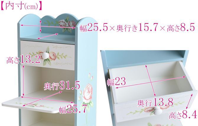 | 商品説明 | 世界にたった一つのハンドペイント家具が、あなたの毎日に“ワクワク”と“ときめく楽しさ”を与えてくれます。 ワンルームや女の子のお部屋にオススメなコンパクトサイズ。 可愛い収納を叶えてくれます。 ゲスト用のスリッパもそろえたくなっちゃいます!! 玄関に置いておくと便利な必需品の収納もできます。 【商品サイズ】 幅28×奥行き32.5×高さ93 【内寸】 上部スペース:幅25.5×奥行き15.7×高さ8.5 引出し:幅23×奥行き13.8×高さ8.4 棚:幅25.7×奥行き31.5×高さ13.2 ※落札価格に消費税が掛かります。 ※お使いのモニターや照明器具などで、実際の色とは若干異なって見える場合があります。 ※アウトレット商品のため、多少の色ムラ、小キズが見られます。使用には問題ありません。 ※ヤフオク以外でも販売していますので、出品中に在庫が無くなった際は、出品を取り消す事がございます。 |