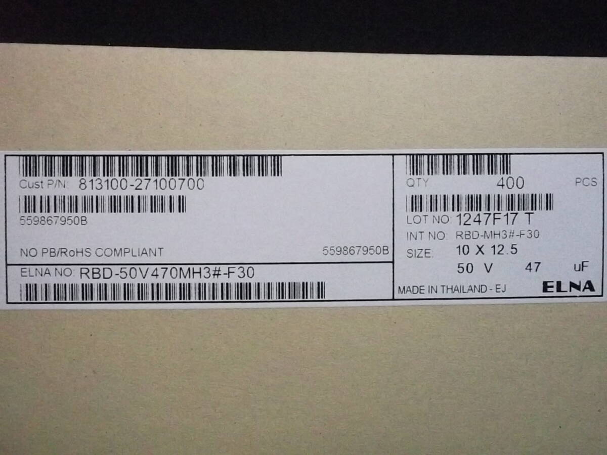 400個 ELNA エルナー 音響用(RBD)小形アルミニウム電解コンデンサ 50V47μF