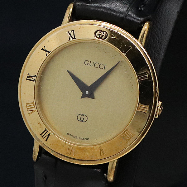 1円 稼働 良品 グッチ 3000L QZ ゴールド文字盤 レディース腕時計 6693000 11APT KMR