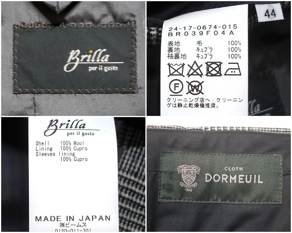 19AW 定価17.6万 極美品 Brilla per il gusto ブリッラ DORMEUIL グレンプレイド チェック スリーピーススーツ セットアップ メンズ 44