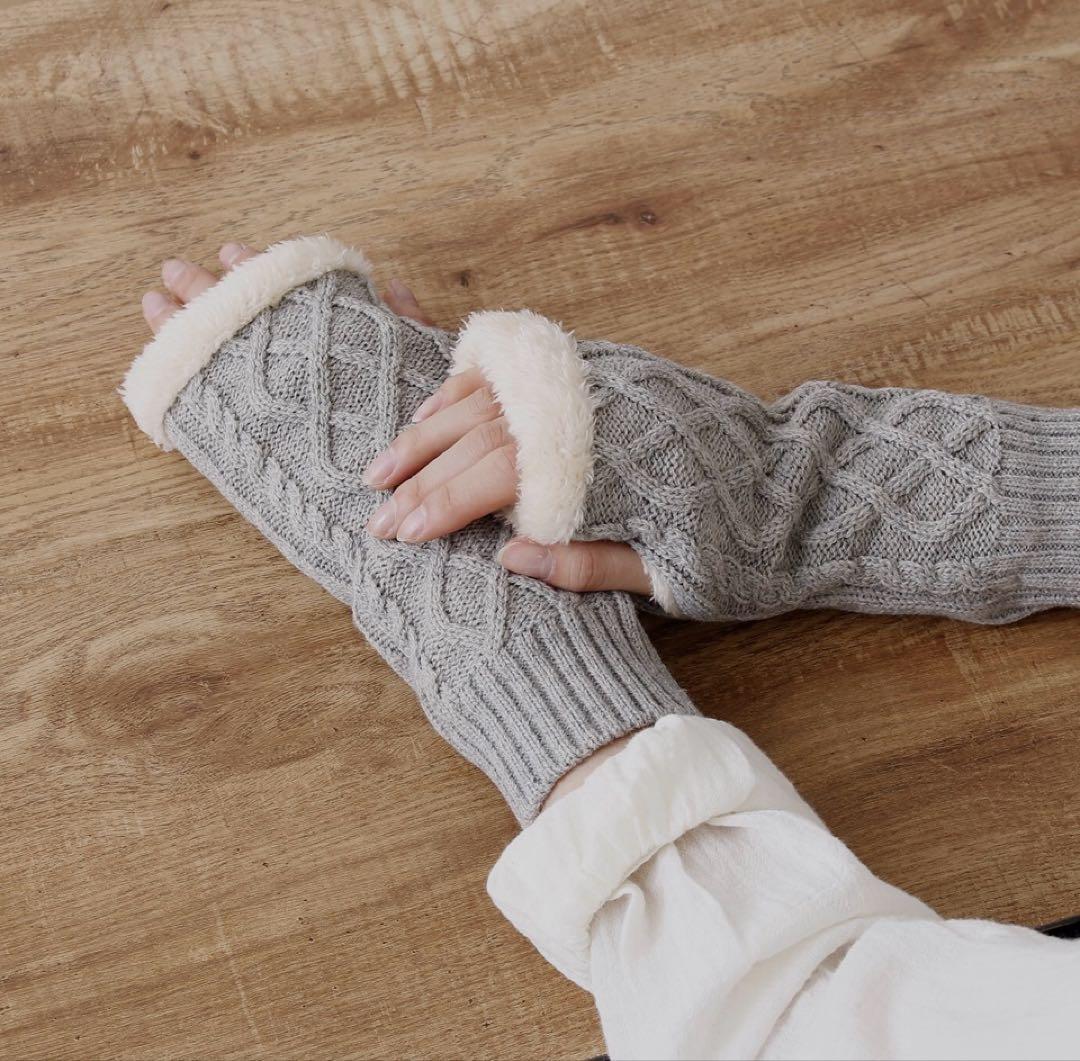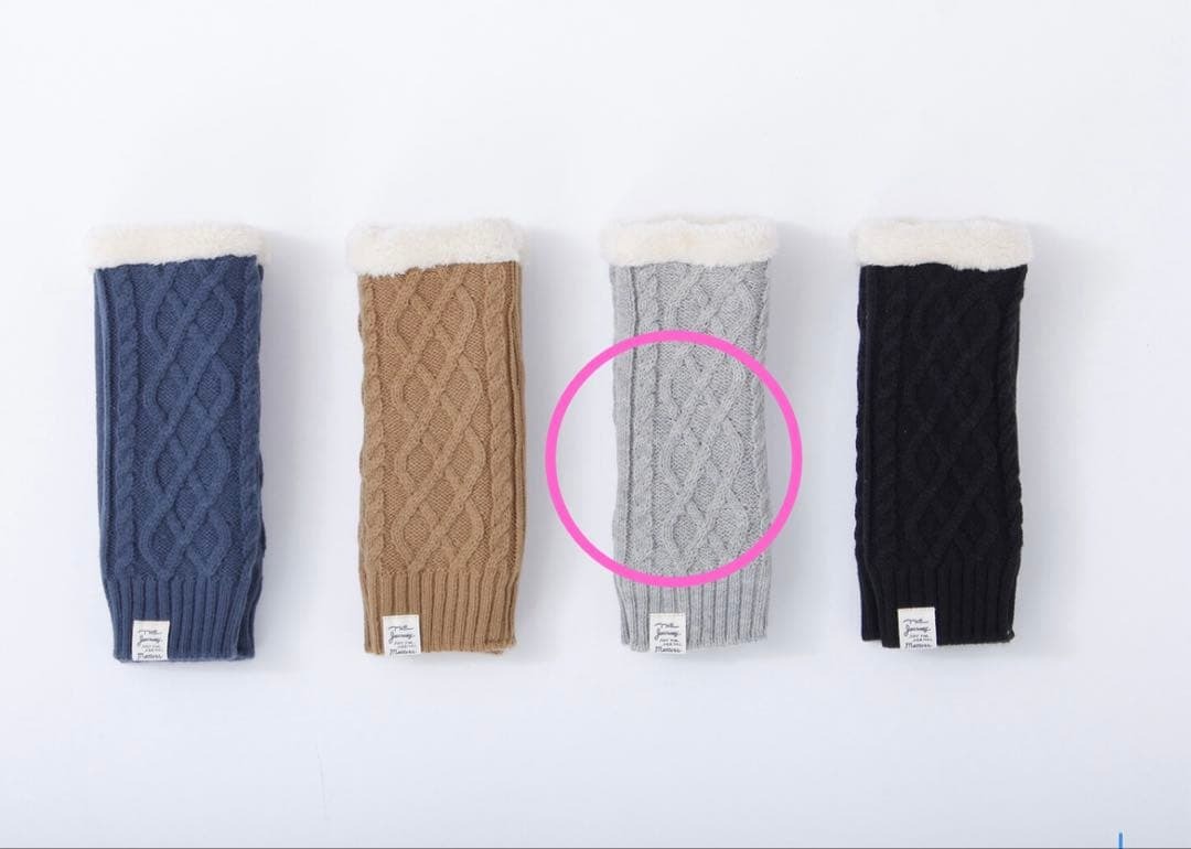 ケーブル編みが可愛いロングタイプのニットハンドウォーマーです。