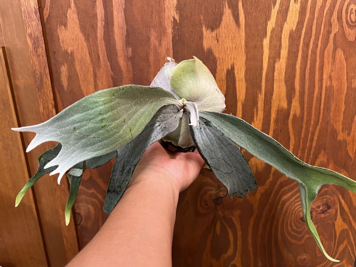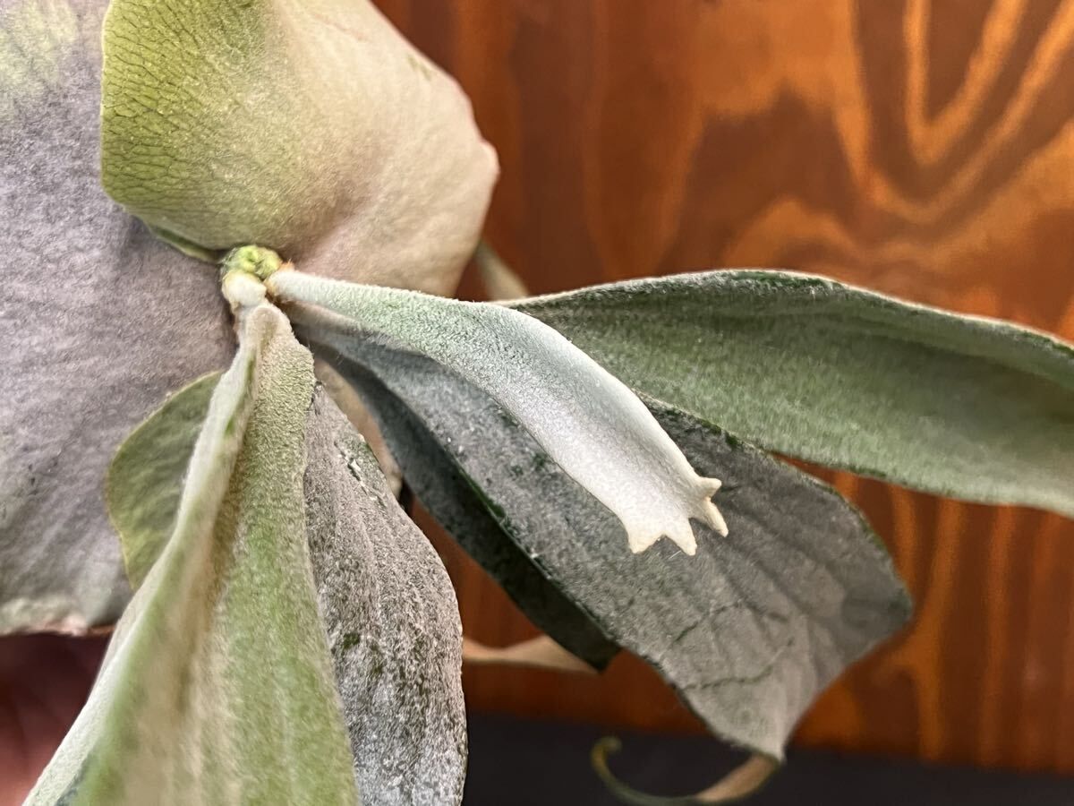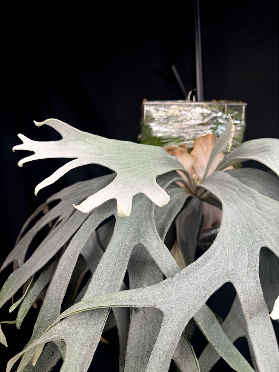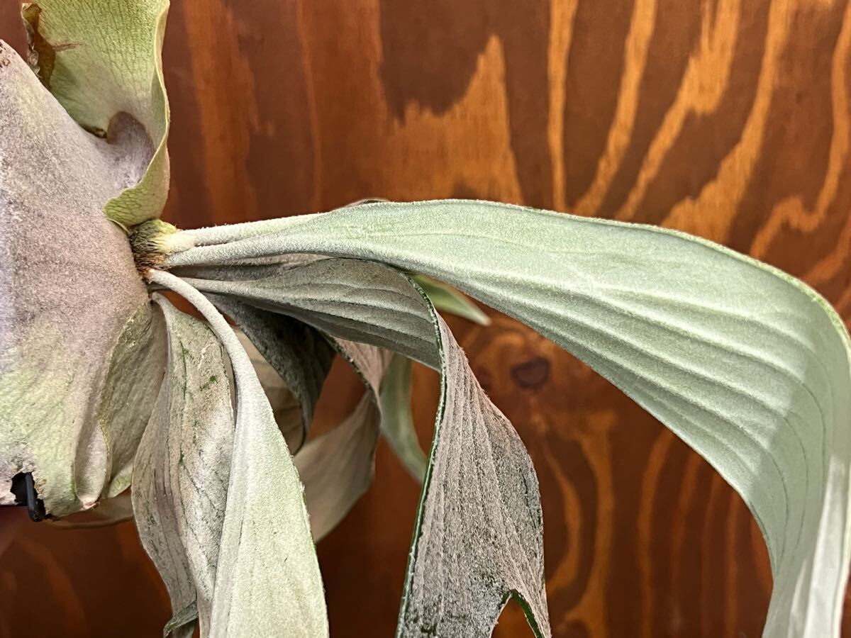 胞子葉はとても白く、裏側はカッパー色で、なんといっても筋肉質な葉脈が特徴的な株です。
