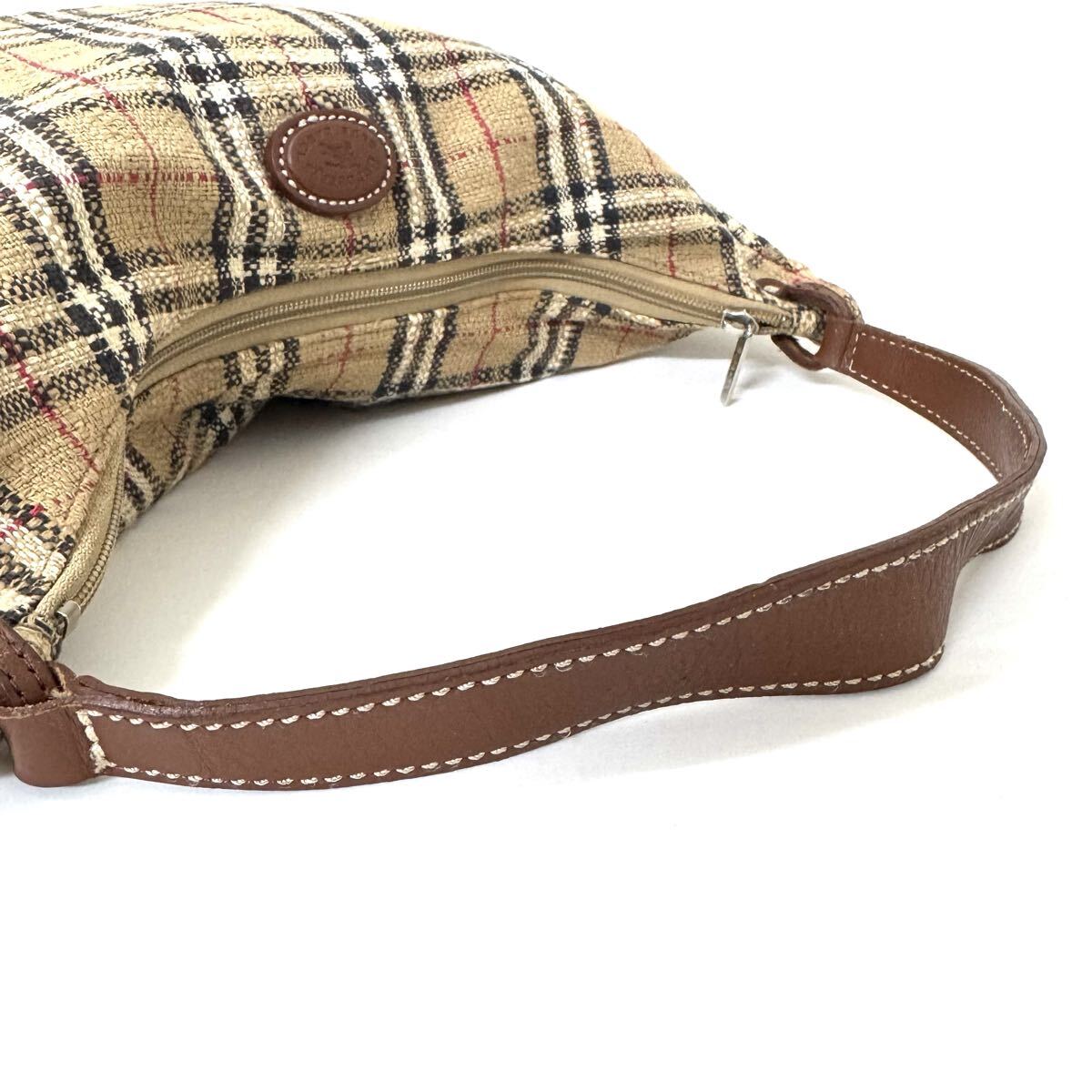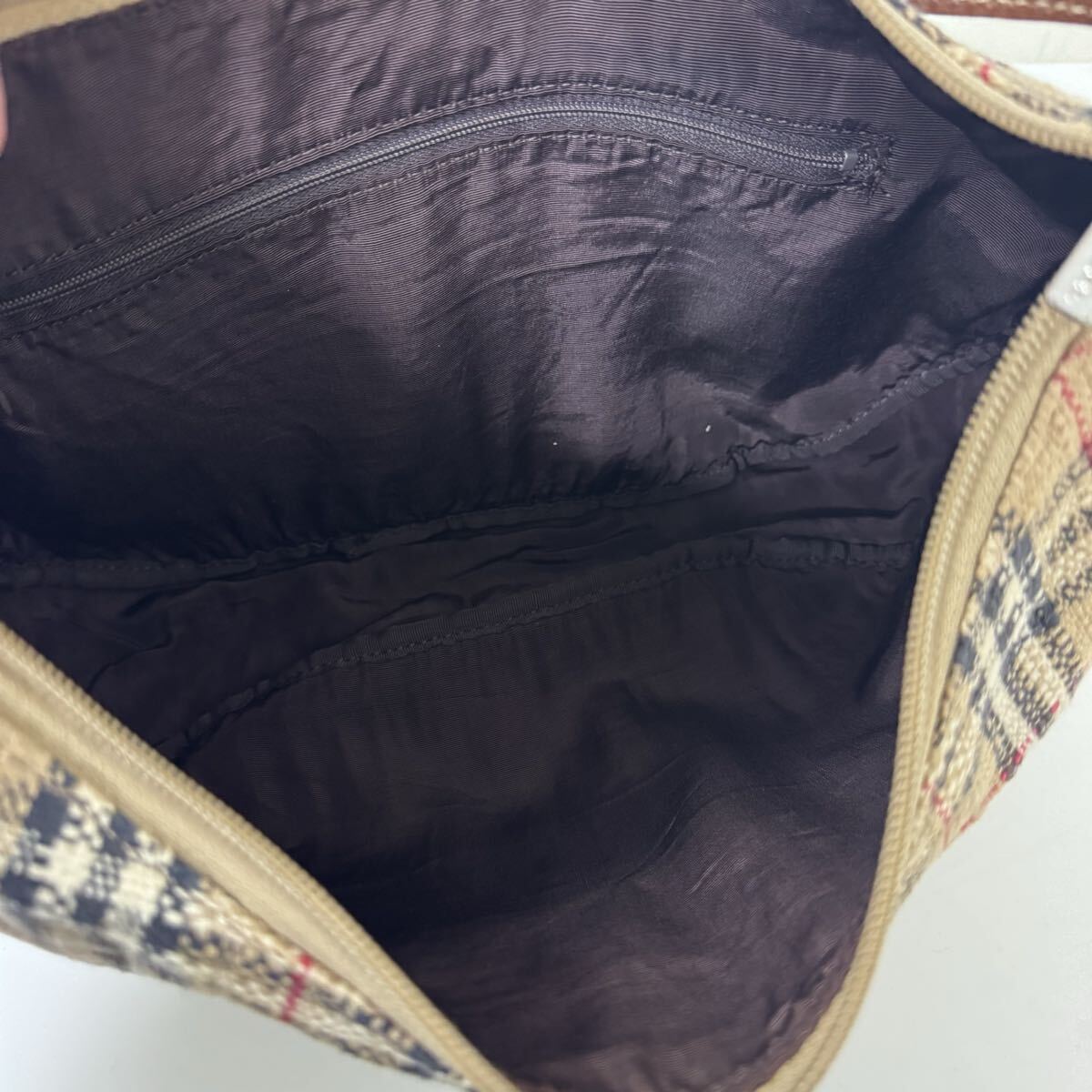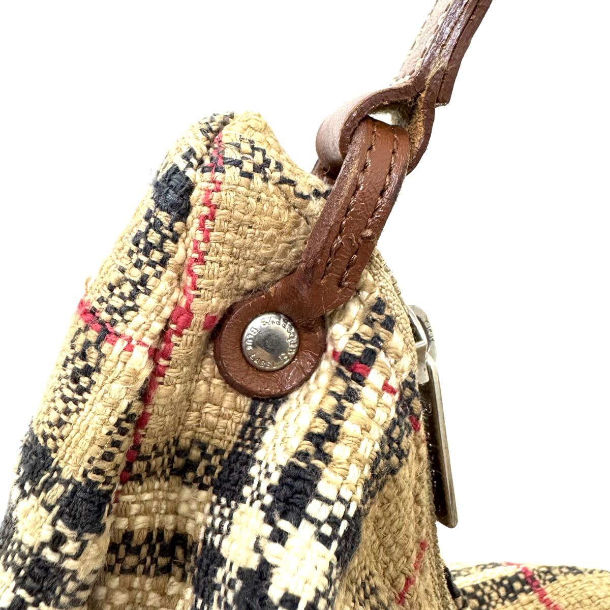 チェック柄にブラウンレザーのシンプルなバッグです。