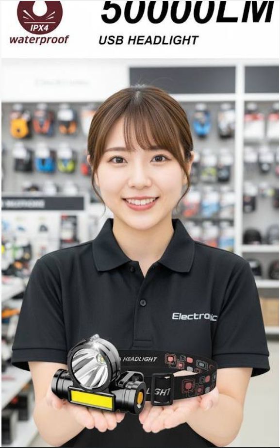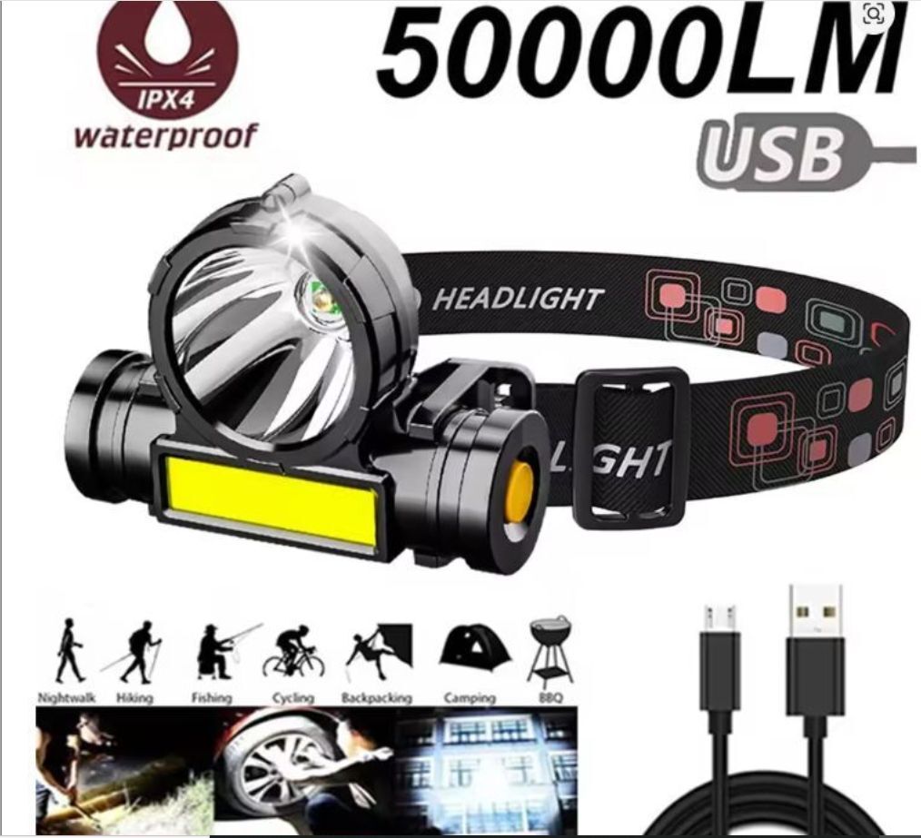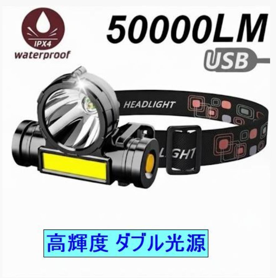 【送料無料!】 50000LM 超爆光 ヘッドライトOSL + COB(遠距離&近距離) 高輝度 ダブル光源 ★USB充電式 IPX4防水 釣り 作業 防災に最適!