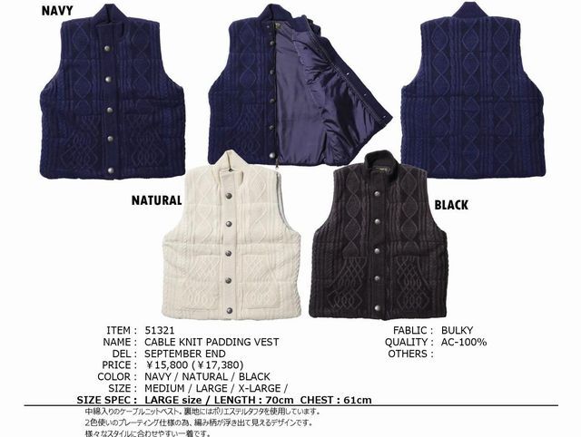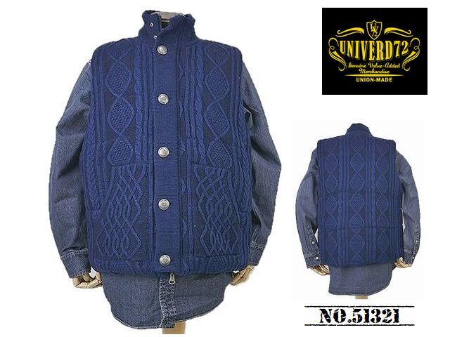 【送料無料 54%OFF】UNIVERD72 ユニバード72 ケーブルニット パディング (中綿) ベスト NO.51321 NAVY_Lサイズ