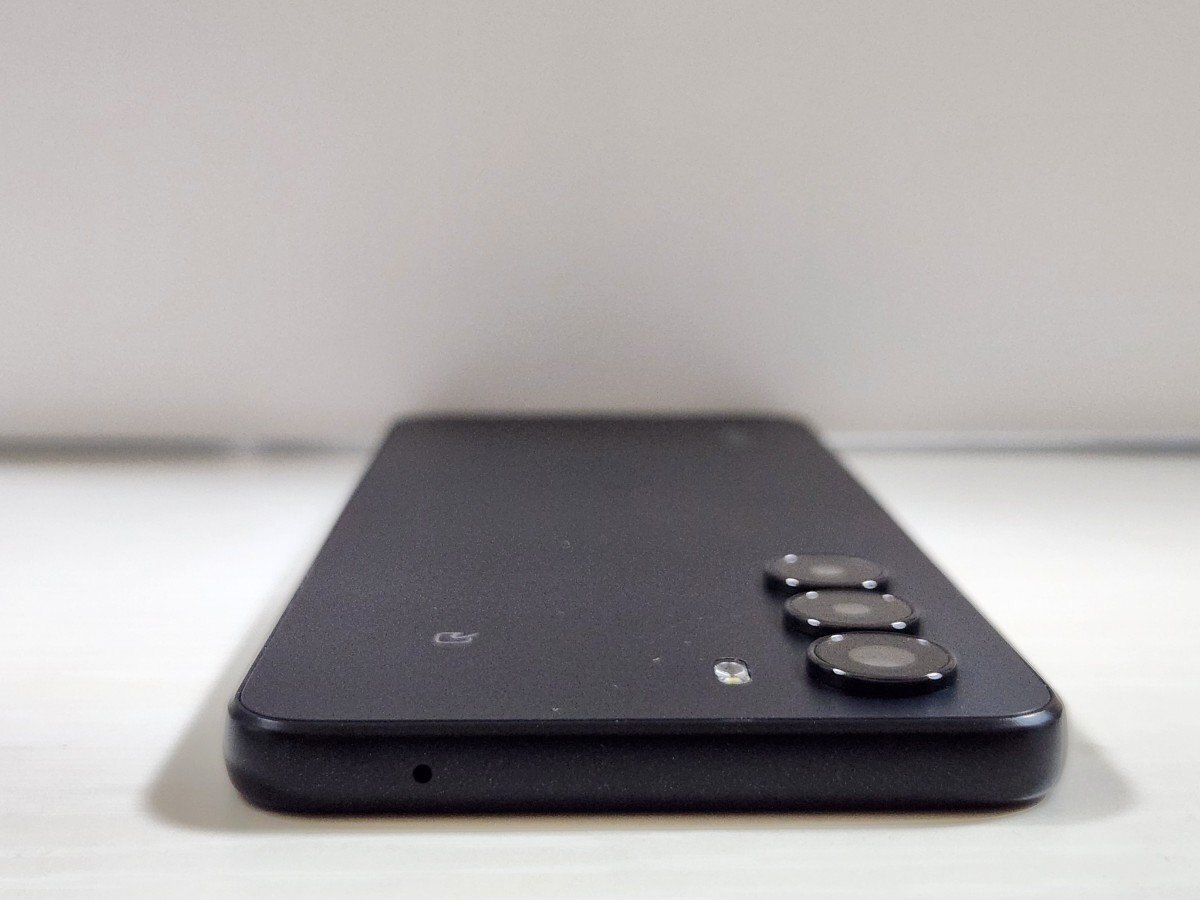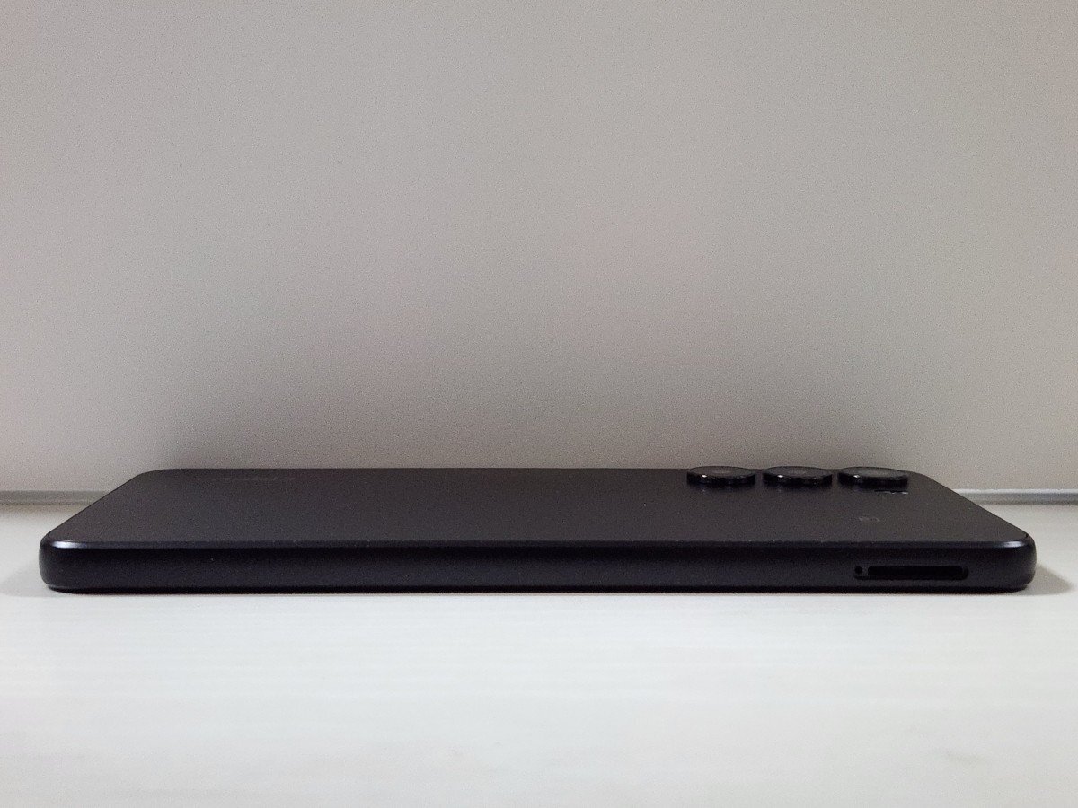 【外装状態】: B 液晶はきれいな状態です。背面に薄いシール跡や擦れが少しあります。薄いピンクの画面焼けがあります。SIMトレーがありません。