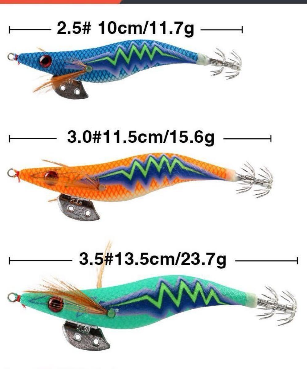 2.5号エギ:5.5秒毎に1m沈下する重さ12g、長さ10cm。