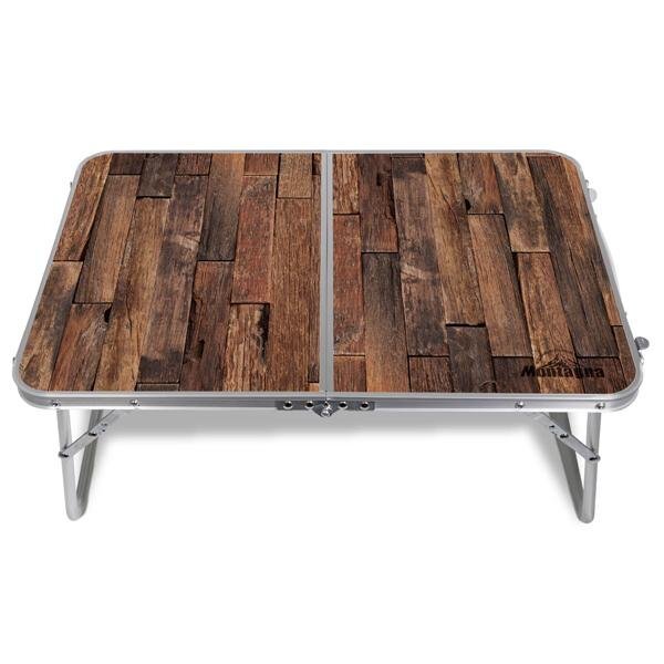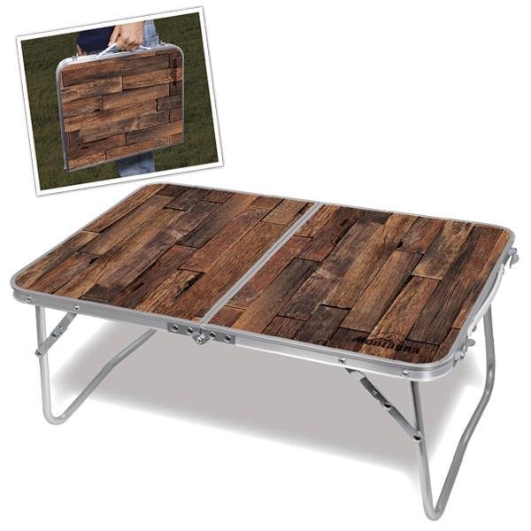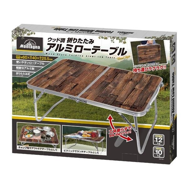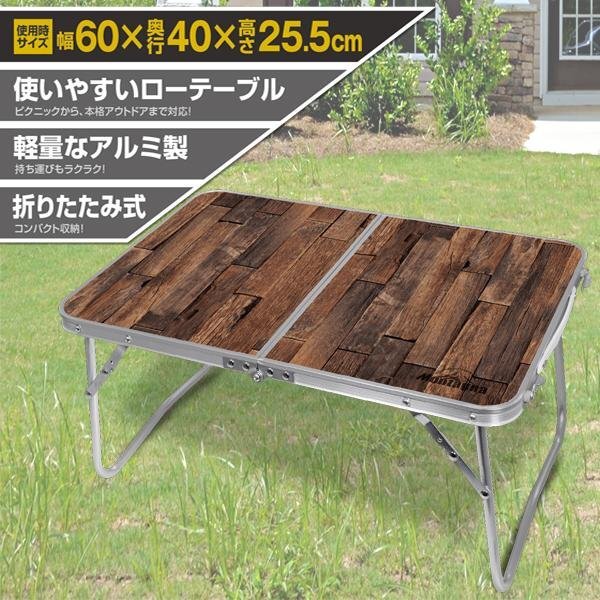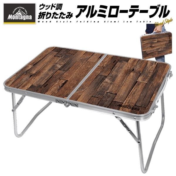折りたたみ アルミ製アウトドアテーブル ウッド調 机 軽量 デスク 持ち運べる キャンプ BBQ 送料無料- 80S◇ NEWローテーブル:ウッド調