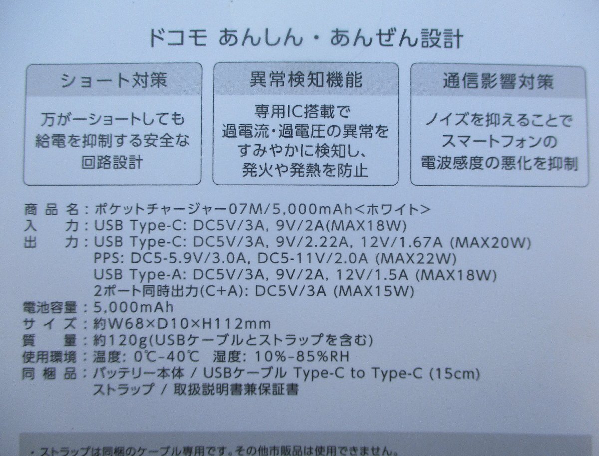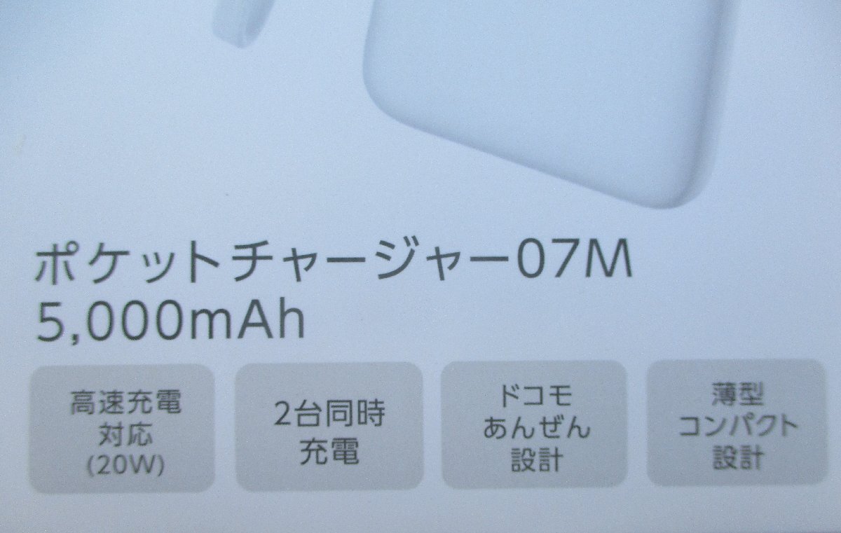 ☆docomo selectドコモ純正 ポケットチャージャー07M 5000mAh ホワイト モバイルバッテリー◆2台同時充電1,991円