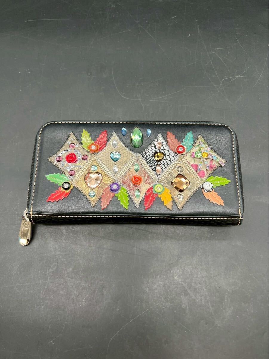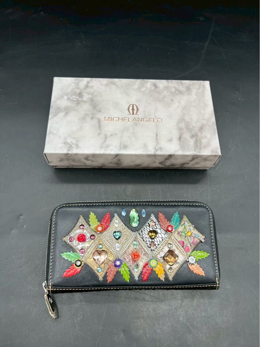 森岡 11月 No.80 Michelangelo ミケランジェロ 長財布 ラウンドファスナー ウォレット パッチワーク 目立った汚れなし 箱付き