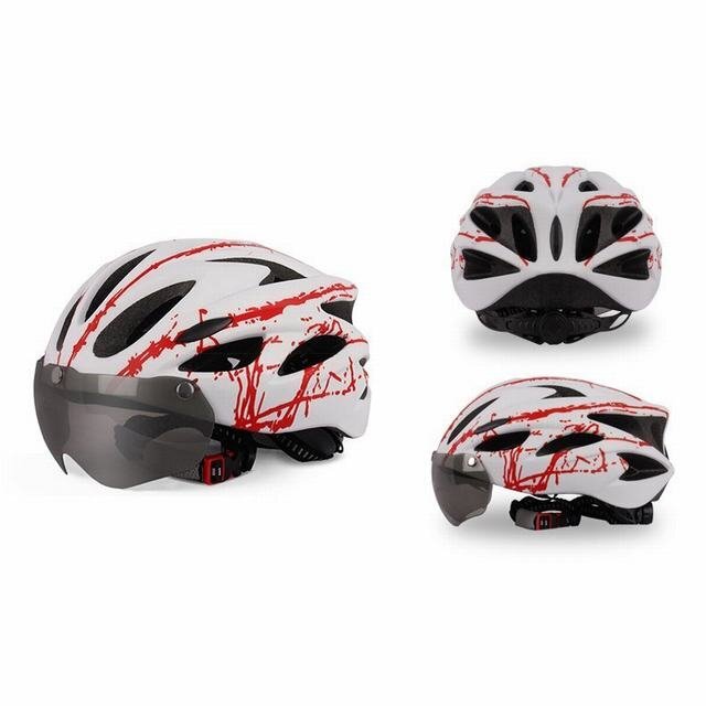 自転車 ヘルメット マグネット式ゴーグル付き 自転車用 軽量 高剛性 通気性 サイズ調整 サイクリング 大人 ロードバイク ホワイト&レッド