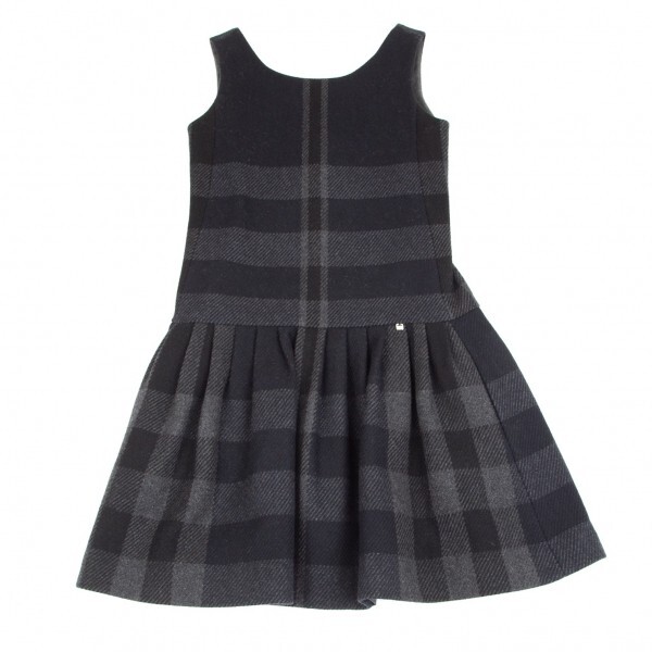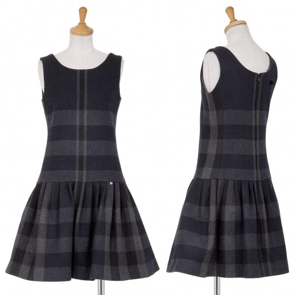 | エンポリオ アルマーニEMPORIO ARMANI チェックツィードウールワンピース 紺黒グレー36 |