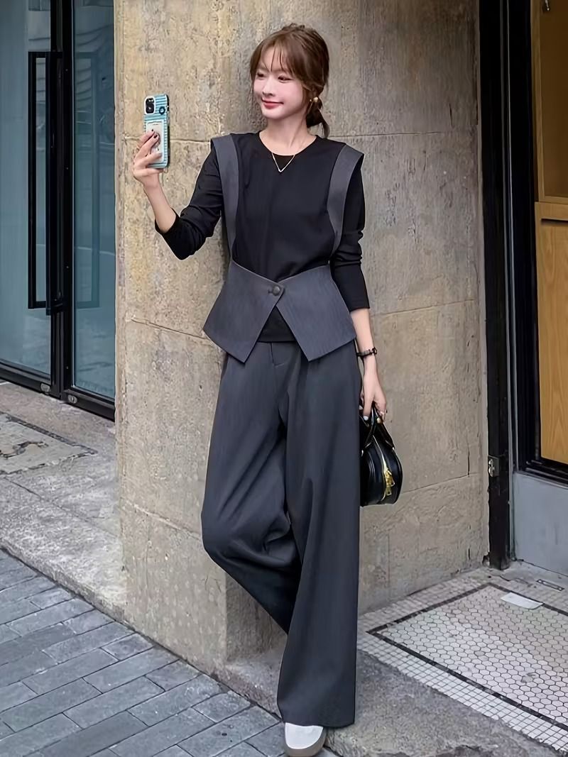 上品に体型をカバーしながら、おしゃれに仕上がるプラスサイズ向けセットアップ。