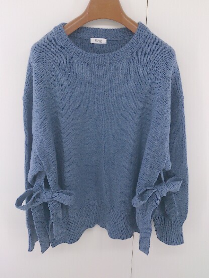 ◇ LOWRYS FARM サイズリボン スリット 長袖 ニット セーター サイズF ブルー系 グレー系 マルチ レディース E