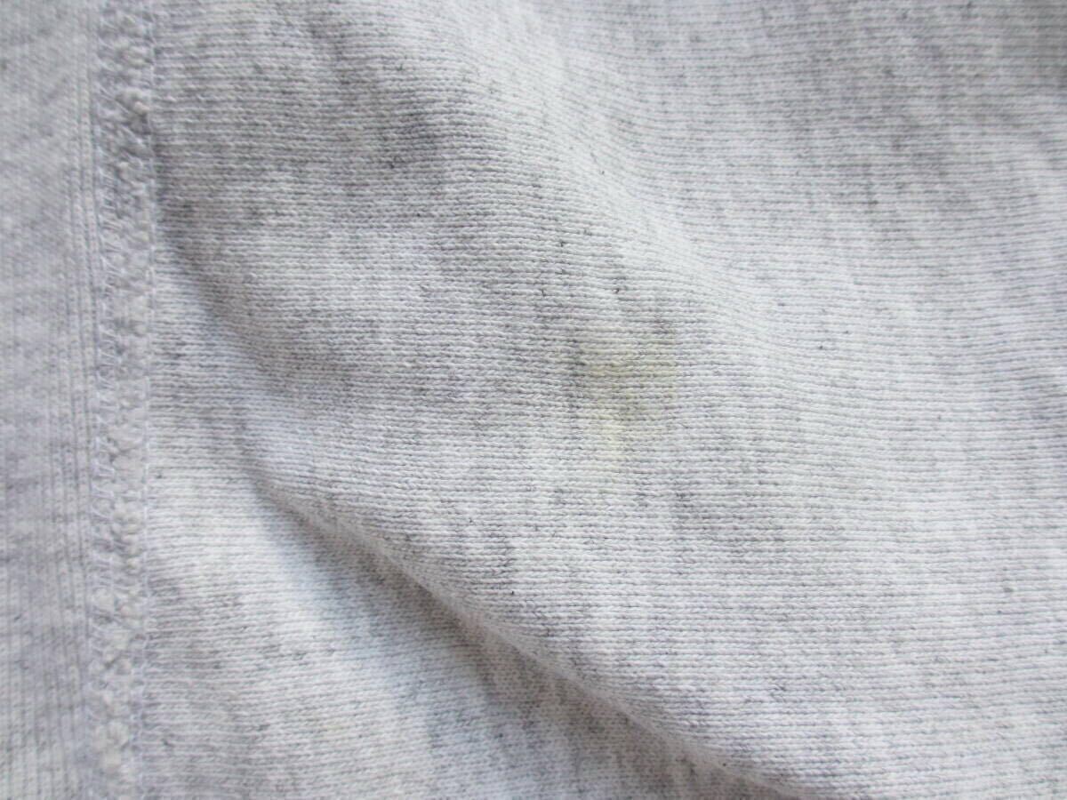 左袖、プリント横辺り、後ろ身頃左腰辺りに汚れがあります。