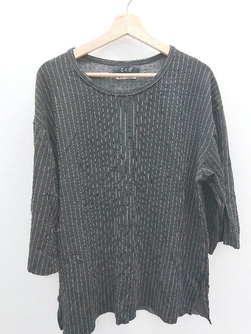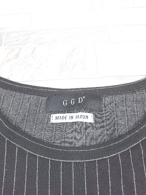 ◇ ⊂ GGD ジージーディー ストライプ 七分袖 カットソー サイズF ブラック レディース P
