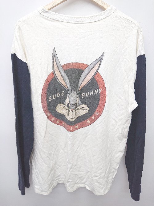 ◇ LOONEY TUNES × GU 長袖 Tシャツ カットソー サイズL ホワイト ネイビー系 マルチ メンズ P