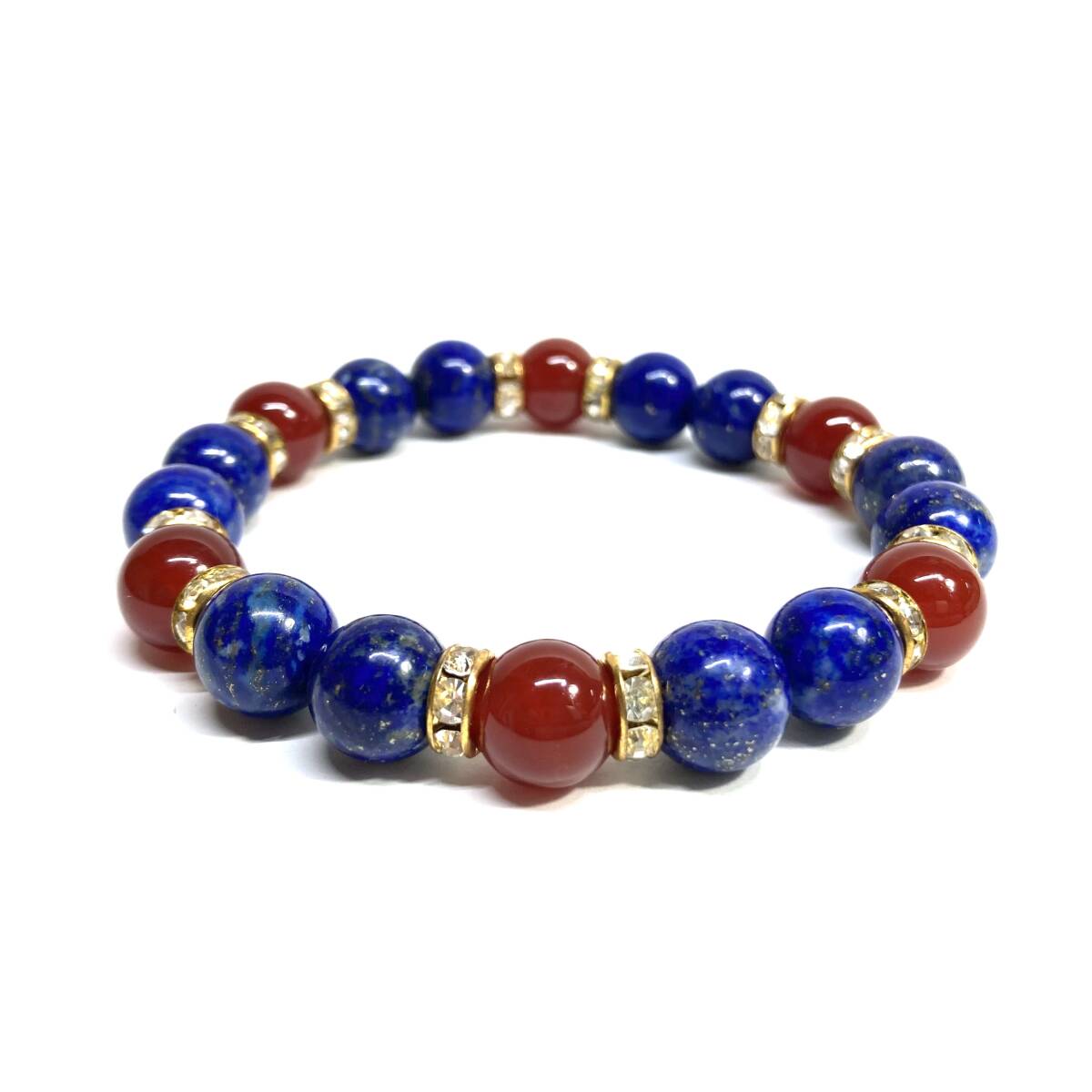 ラピスラズリ&赤瑪瑙 パワーストーン ブレスレット 天然石ブレス (ゴールド) 10mm メンズ・レディース ☆