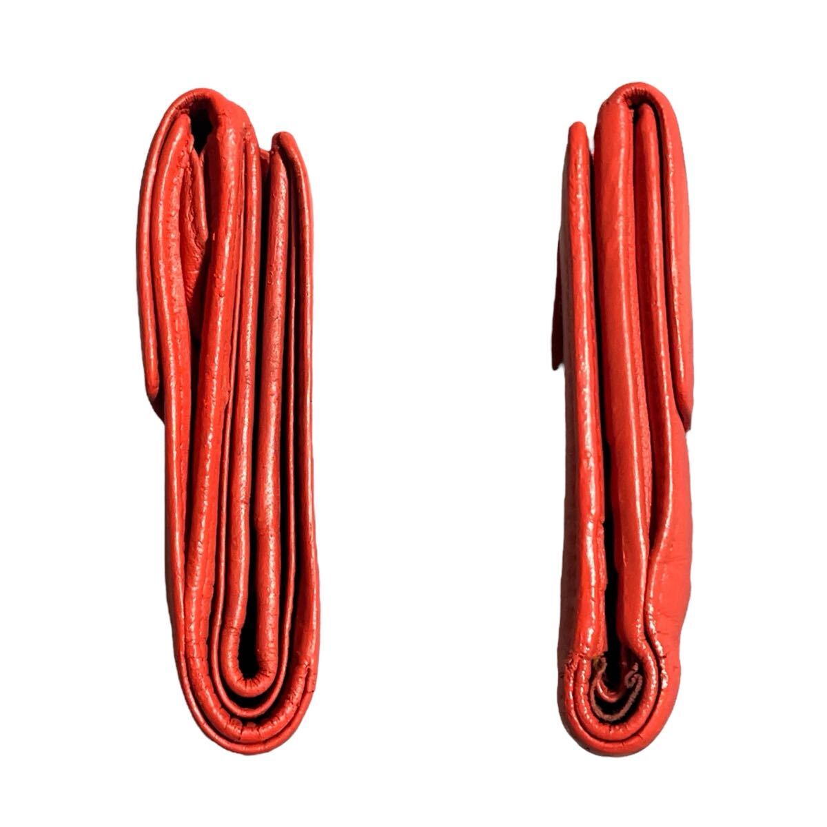 コンパクトサイズで持ち運びやすく、赤色のレザーが華やかさをプラスしてくれます。