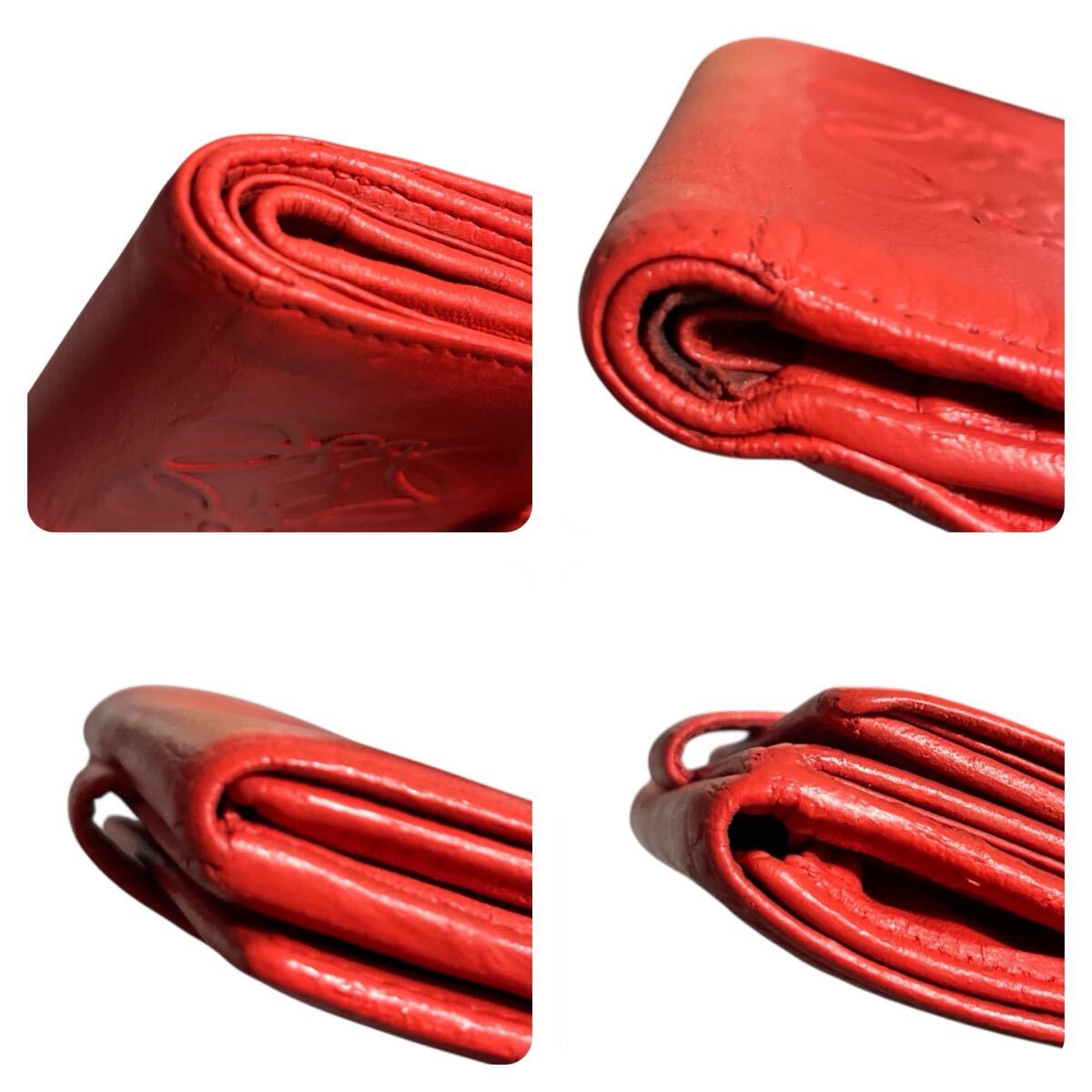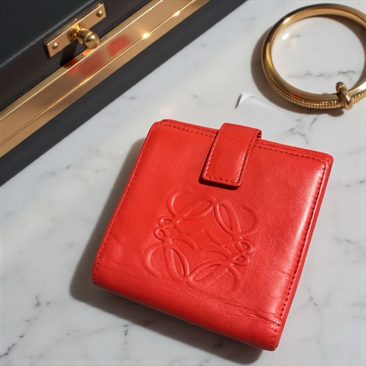 LOEWE ロエベ 二つ折り財布 レッド アナグラム ピンク レザー