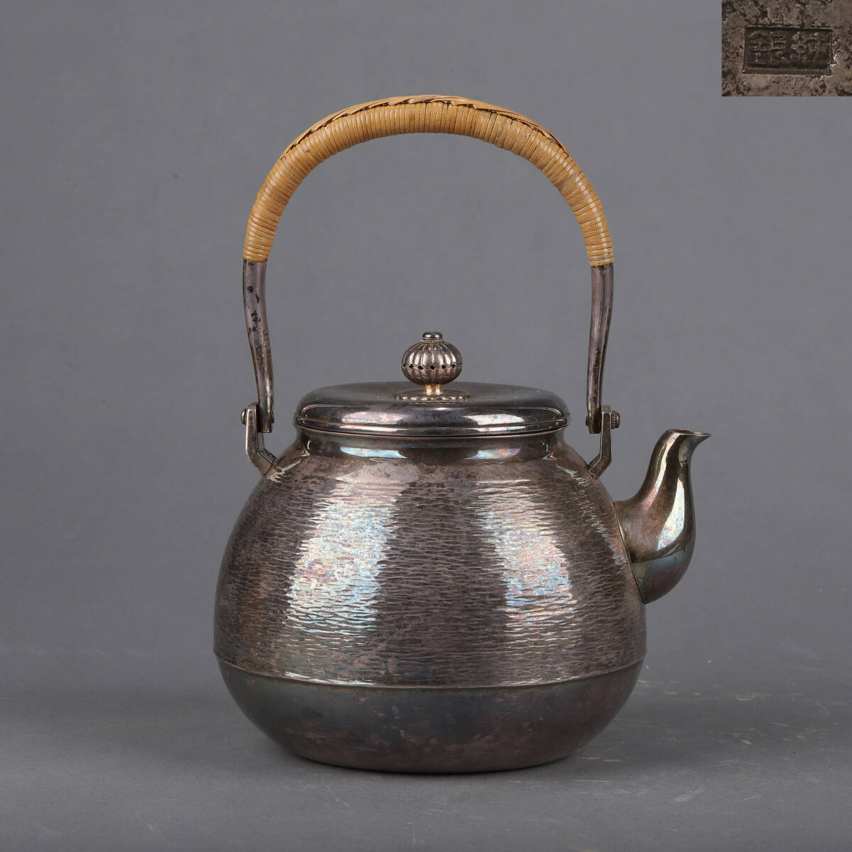 純銀 時代 槌目打ち 銀瓶 金工 工芸 394g