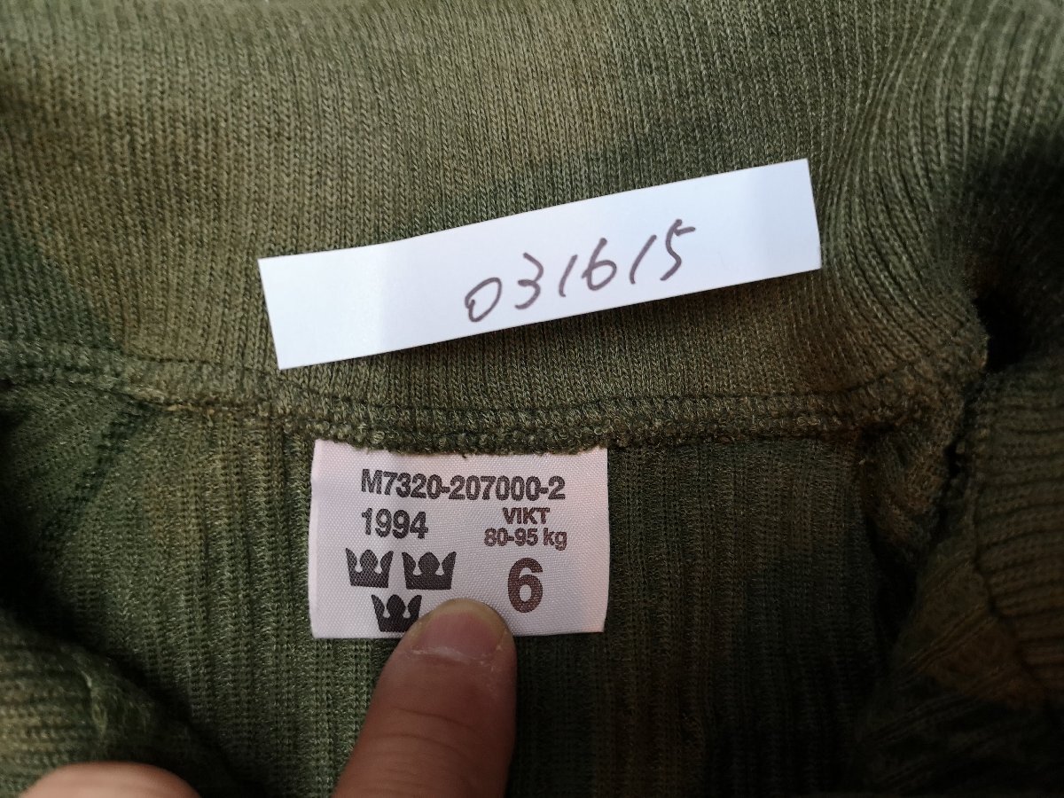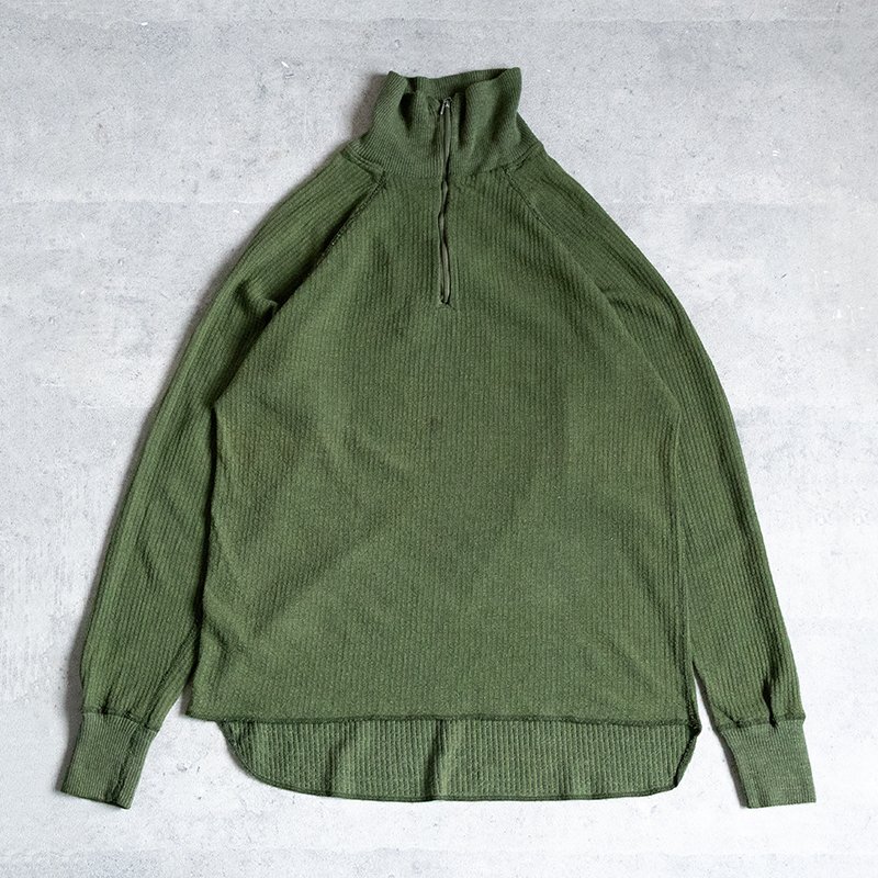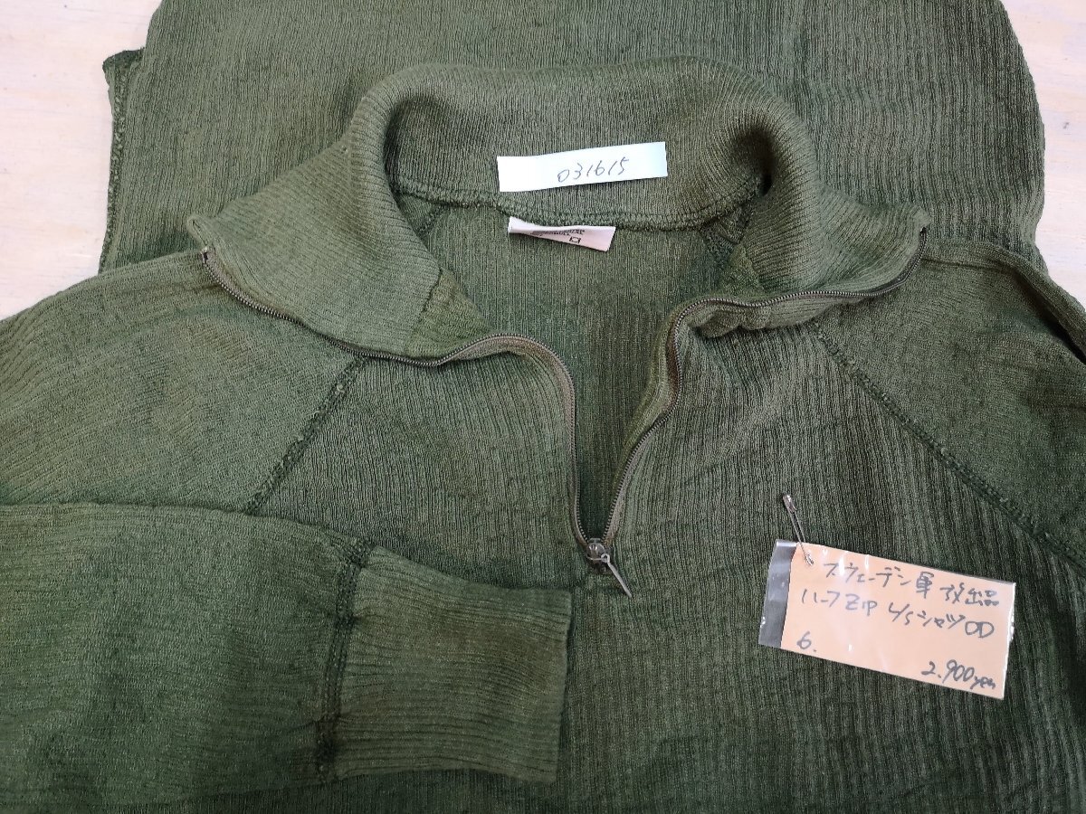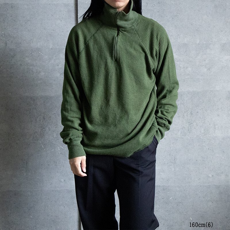 スウェーデン軍のサーマル生地のような伸縮性のある生地を使用したアンダーシャツです。 動きやすいようにラグランスリーブの仕様。サーマル生地のような凹凸のある生地が使用されています。ネック部分はハーフジップ仕様。上まで閉めれば首元をすっぽり覆う事が出来ます。 ●素材:50% ポリエステル 28% ポリクラール繊維22% 綿 状態:未使用に近い 1.2.3.4.5枚目の写真は流用です。 サイズ5( 身幅約46cm / 着丈(後ろ身頃)約62cm / 裄丈約80cm ) 6( 身幅約52cm / 着丈(後ろ身頃)約70cm / 裄丈約85cm ) 7( 身幅約54cm / 着丈(後ろ身頃)約70cm / 裄丈約86cm ) ※実物アイテムの為、上記サイズに当てはまらない場合がございます。予めご了承下さい。 沖縄離島を除く全国500円でお送りいたします、落札価格にプラスでお願いいたします。