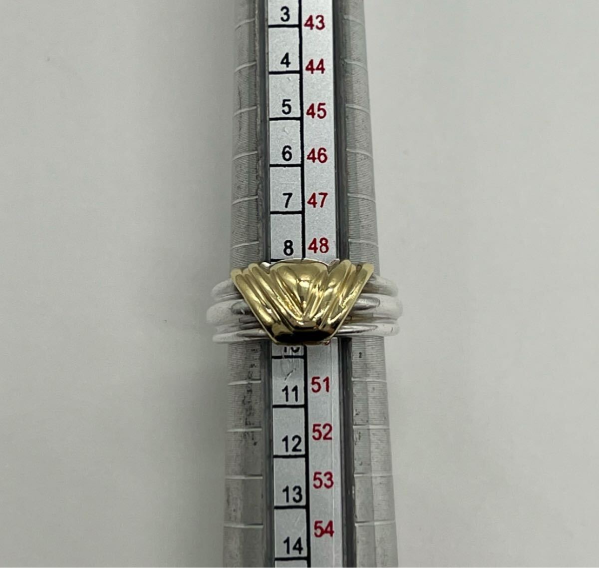 トップのゴールドのデザインが英語のVの様なデザインになっているリングは市場では出回りのない希少なお品物でございます。