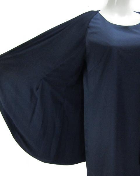 | ゆったりシルエットの上品なワンピース。デザイン性がありオシャレに着て頂けます。背面からサイドにかけてタイトデザインのワンピースにもう一枚付いたデザインになります。ボディーラインが隠せるところが嬉しい。内側のワンピースには裏地がついています。 |