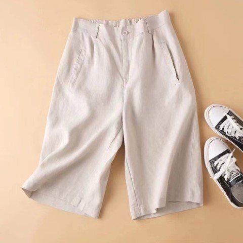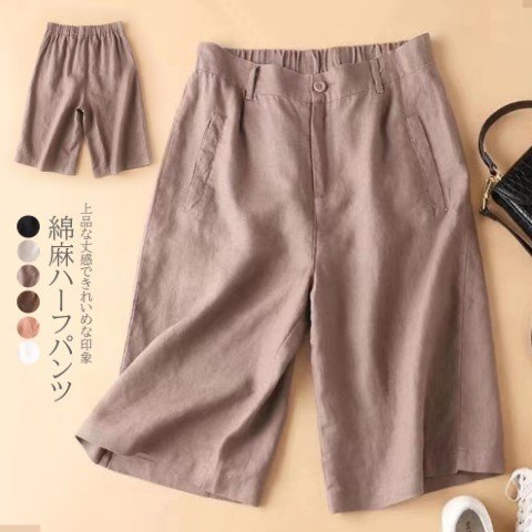 ・ハイウエスト仕様なので脚長・着痩せ効果が期待できます。フロントはスッキリときれいめな印象なのに、後ろがゴムなのでリラクシーな着心地。通気性に優れた綿麻生地で春夏も快適に過ごせます。