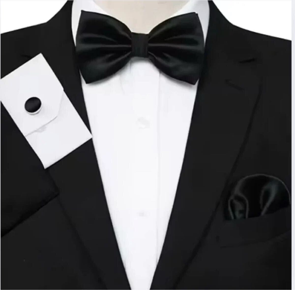 蝶ネクタイ 冠婚葬祭 結婚式 カフスボタン ブラック ポケットチーフ おしゃれ メンズ 男性 10代20代 30代 40代 4点セット 挙式 成人式 披露宴 海外製品 ファッション ネクタイ フォーマル 上品 ドレスアップ 初心者 ブラック 披露宴 無地