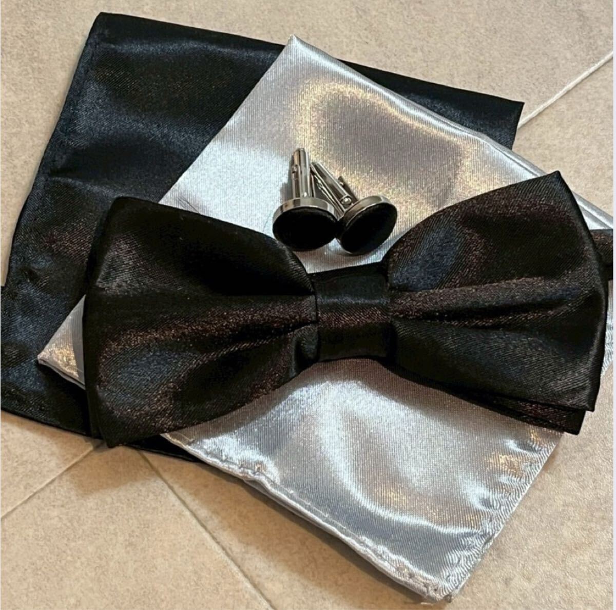 セット内容: 蝶ネクタイ1点&ポケットチーフ1点&カフス1点