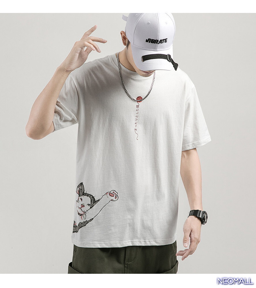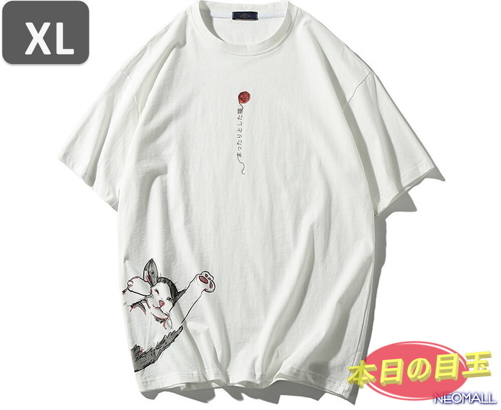 本日のお買得 ☆ 丸首 半袖 Tシャツ【466】 ホワイト XLサイズ トップス シャツ シンプル イラスト デザイン 春夏