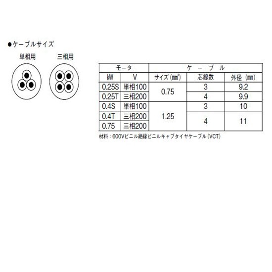 | 0.4 | 単相100V | 50 | 10 | 280 | 3.5 | 18.5 |