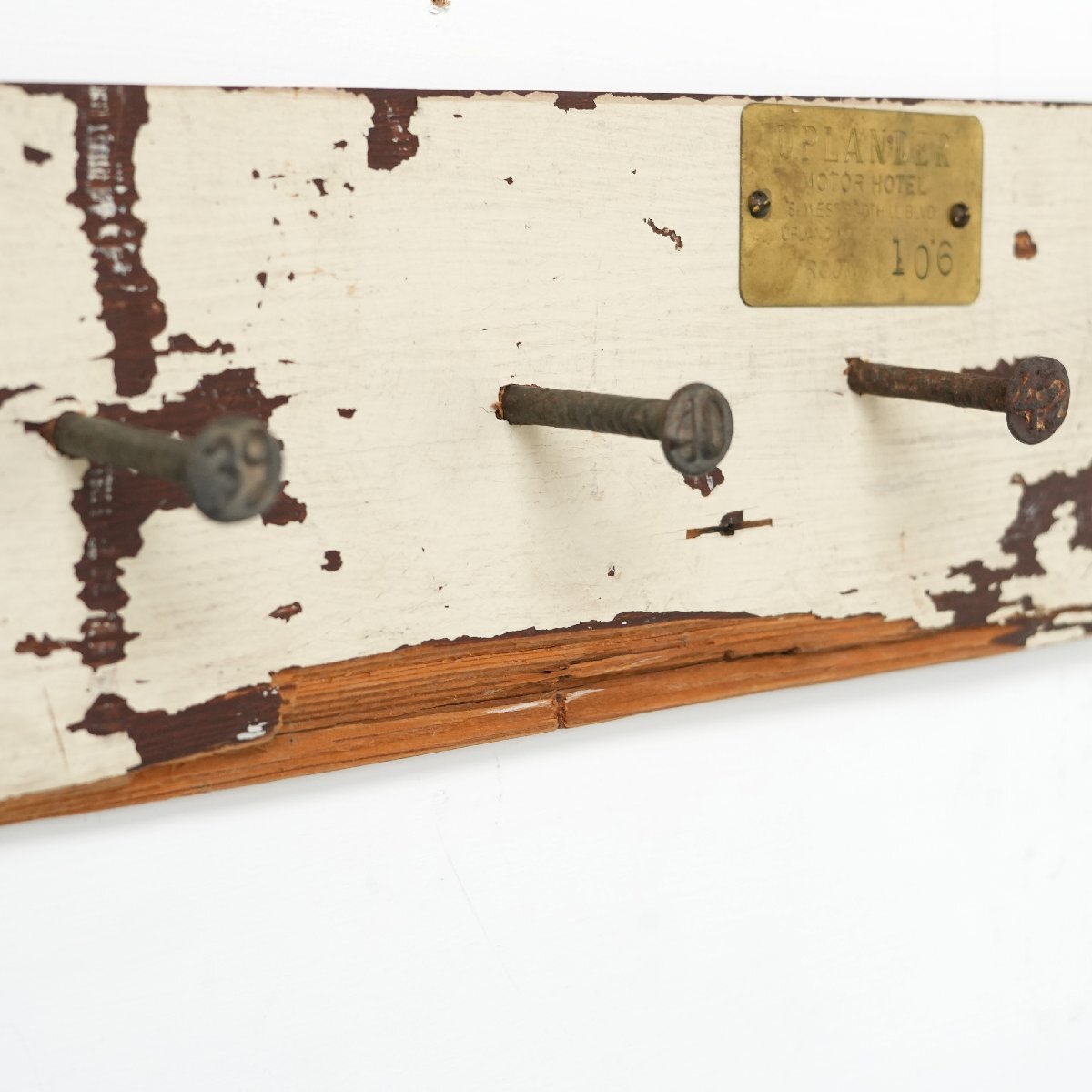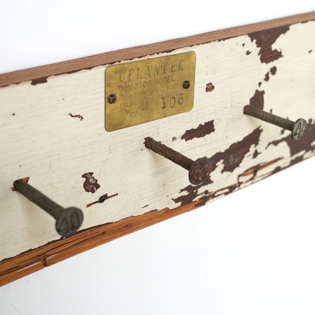 | 商品説明 explanation | 【Uplander Motor Hotel】のヴィンテージ木製7連ウォールフックです。 アメリカ・カリフォルニア州に1958年から1982年頃まで実在していたモーターホテルで、その期間に使用されていたモノだと思われます。 木と金属の質感がよく、お洒落な雰囲気です。 軽いモノの壁掛けや、店舗什器などにいかがでしょうか。 ※キャップは付属しません。 |
