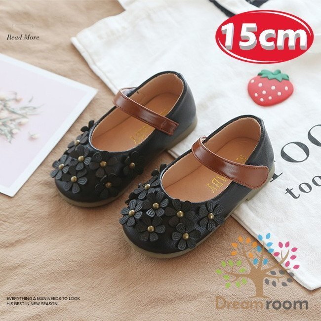 kids 3D フラワー シューズ 【ブラック 15cm】靴 フォーマル子供 ベビー