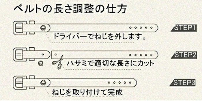 【調整簡単】サイズ調整可能ですので、ベルトがきつく感じた時やゆるく感じた時に簡単に快適になっており ます。バックルからベルトを簡単に外せば、好みのサイズに裁断できるのでサイズ調整も簡単。
