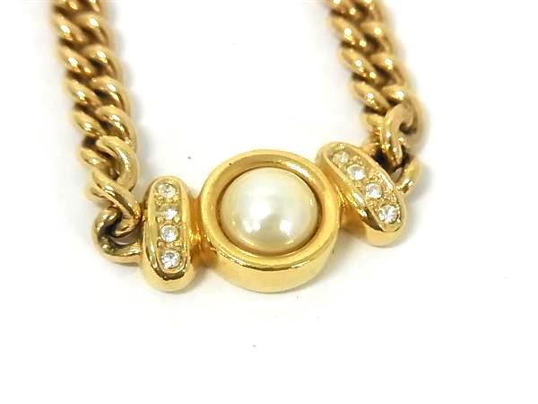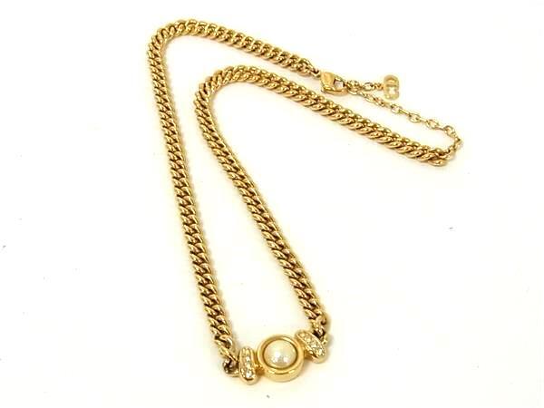1円 ■美品■ ChristianDior クリスチャンディオール ヴィンテージ パール ラインストーン ネックレス アクセサリー ゴールド系 FU8151