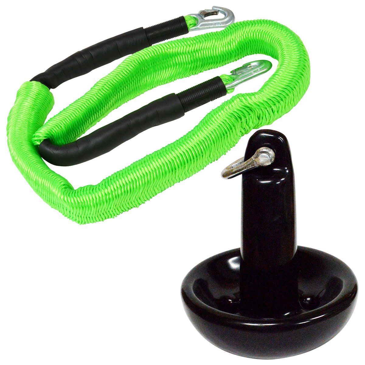 【新品即納】『伸縮ロープ/アンカーセット』マッシュルームアンカー 8LBS 3.5kg 黒 ブラック 6M フロート のびのび アンカー ロープ 緑