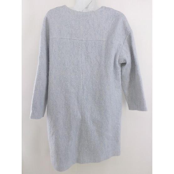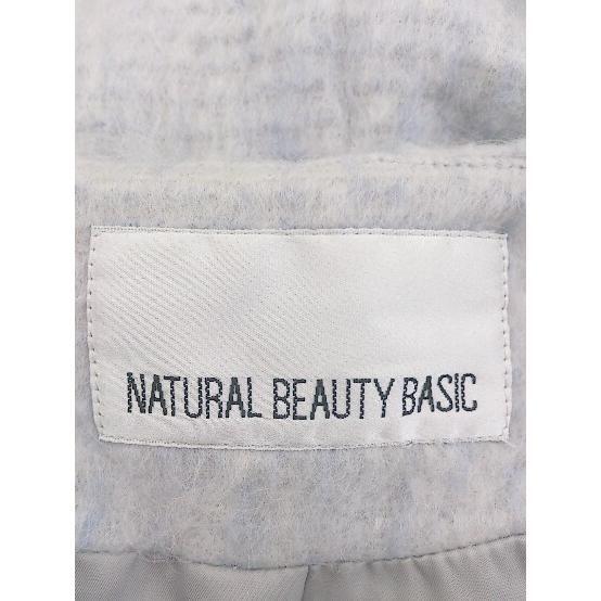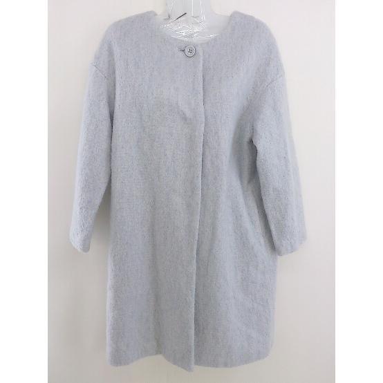 ◇ NATURAL BEAUTY BASIC ノーカラー 長袖 コート サイズM ライトグレー ブルー レディース