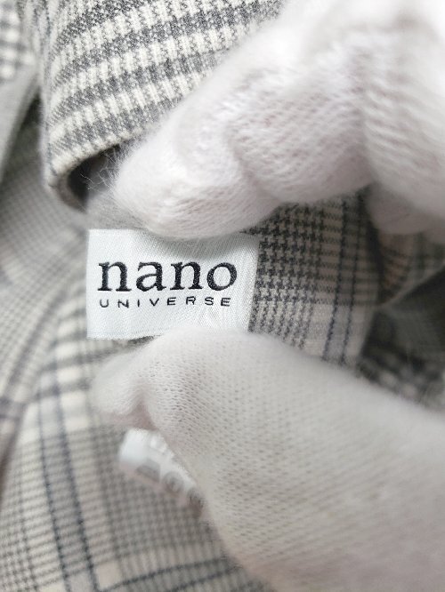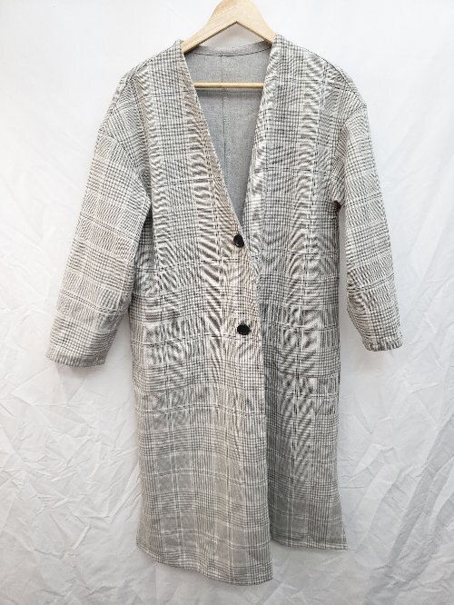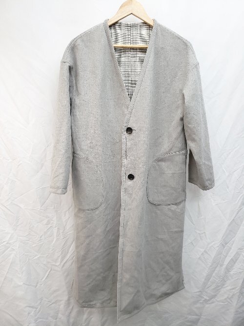 ◇ nano universe グレンチェック リバーシブル ロング 長袖 コート サイズF グレー ベージュ マルチ レディース P