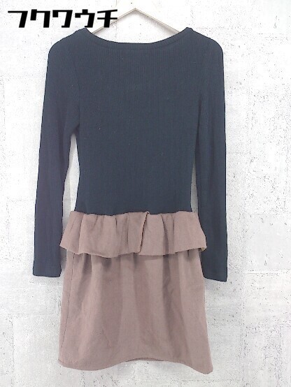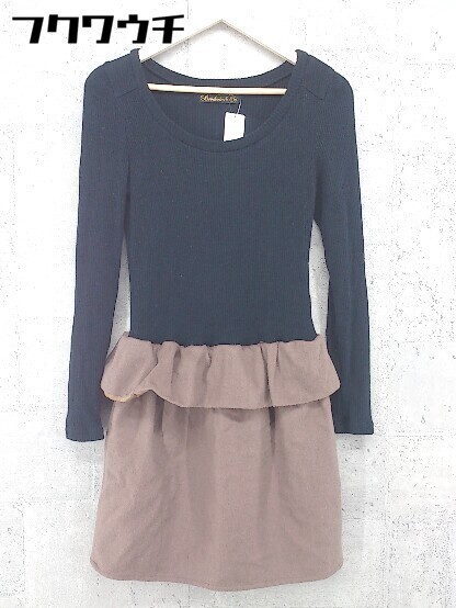 ◇ Broderie&Co nano universe ナノ ユニバース ニット 切替 長袖 ミニ ワンピース サイズF ネイビー ブラウン レディース
