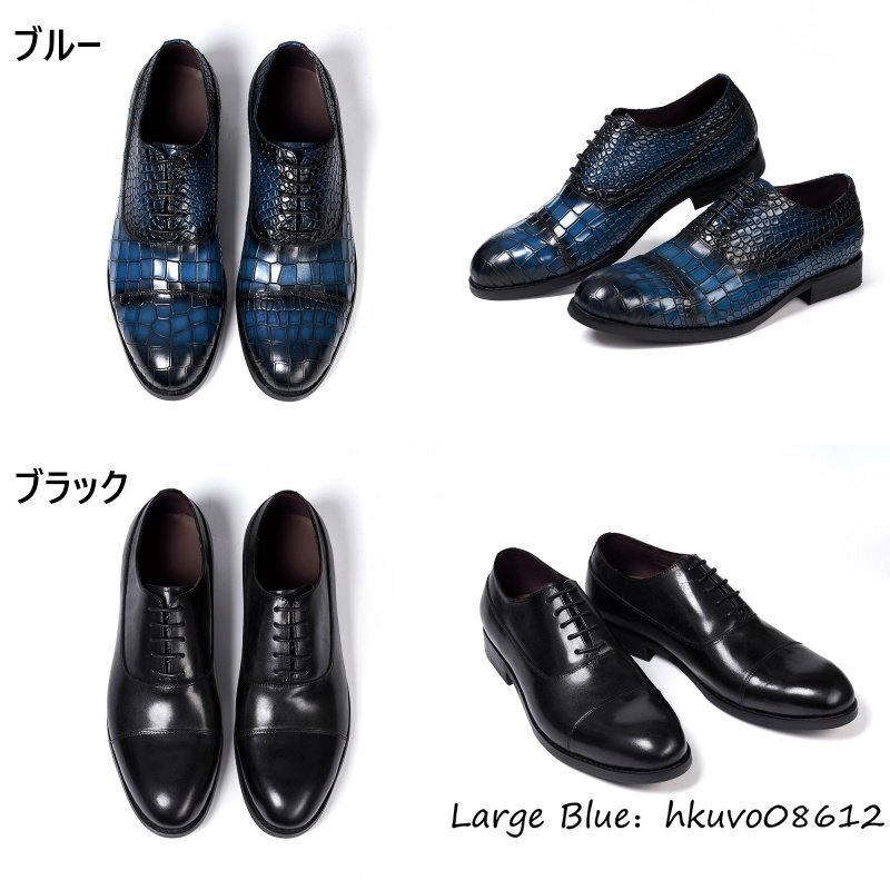最高級■メンズシューズ ビジネスシューズ 本革 レザーシューズ 鰐柄 職人手作り 紳士靴 牛革革靴 フォーマル 宴会 結婚式 ブラック 27.5cm